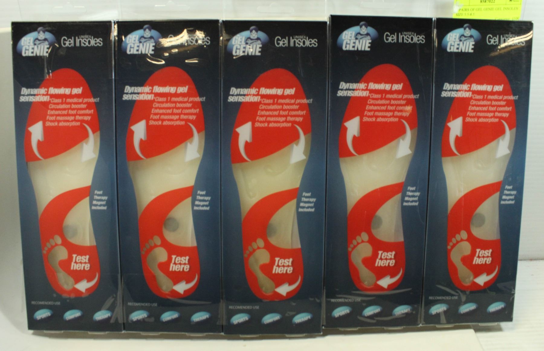 5 PAIRS OF GEL GENIE GEL INSOLES SIZE 5.5-8.5