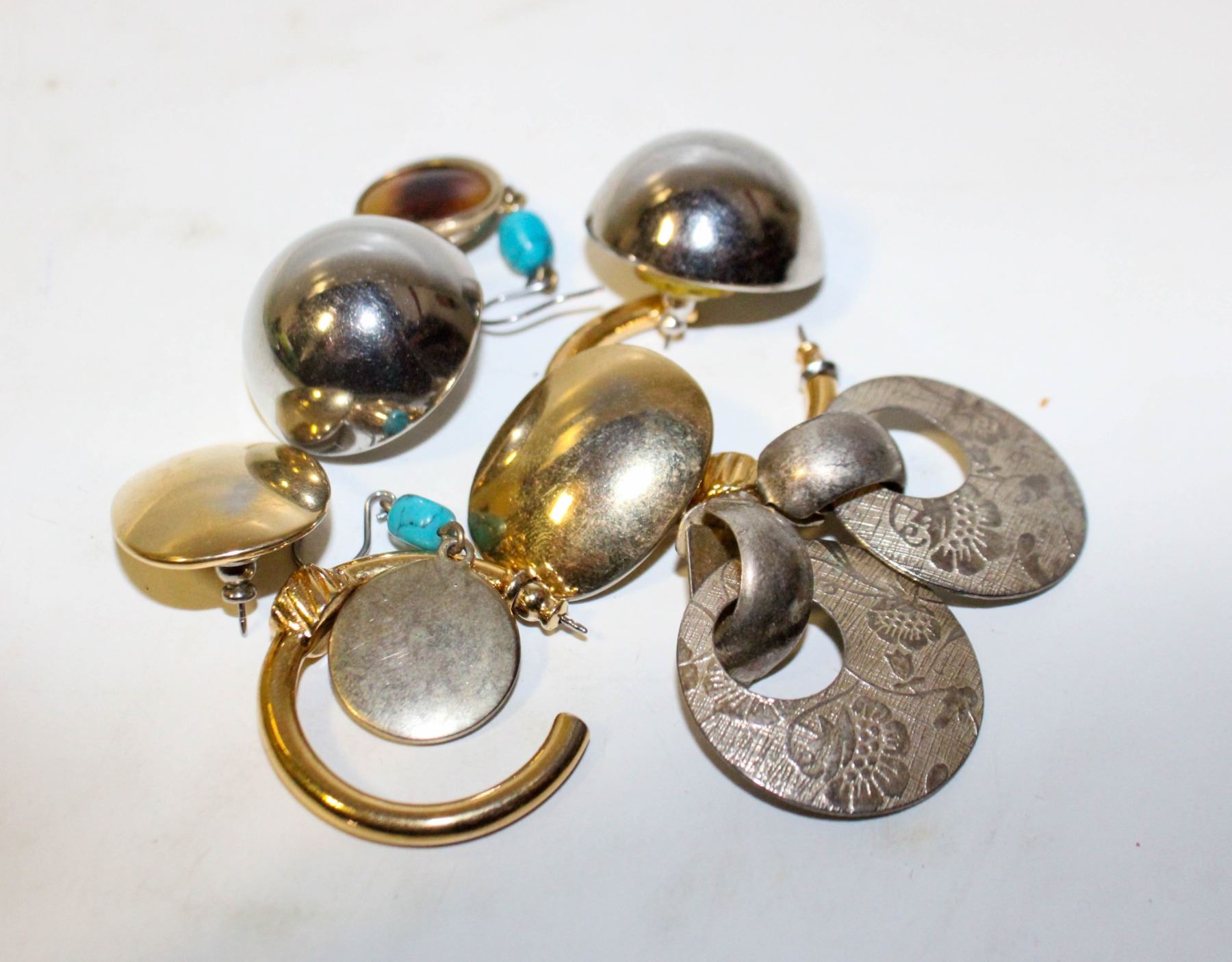 5 PAIRS OF SILVER AND GOLD TONE EARRINGS