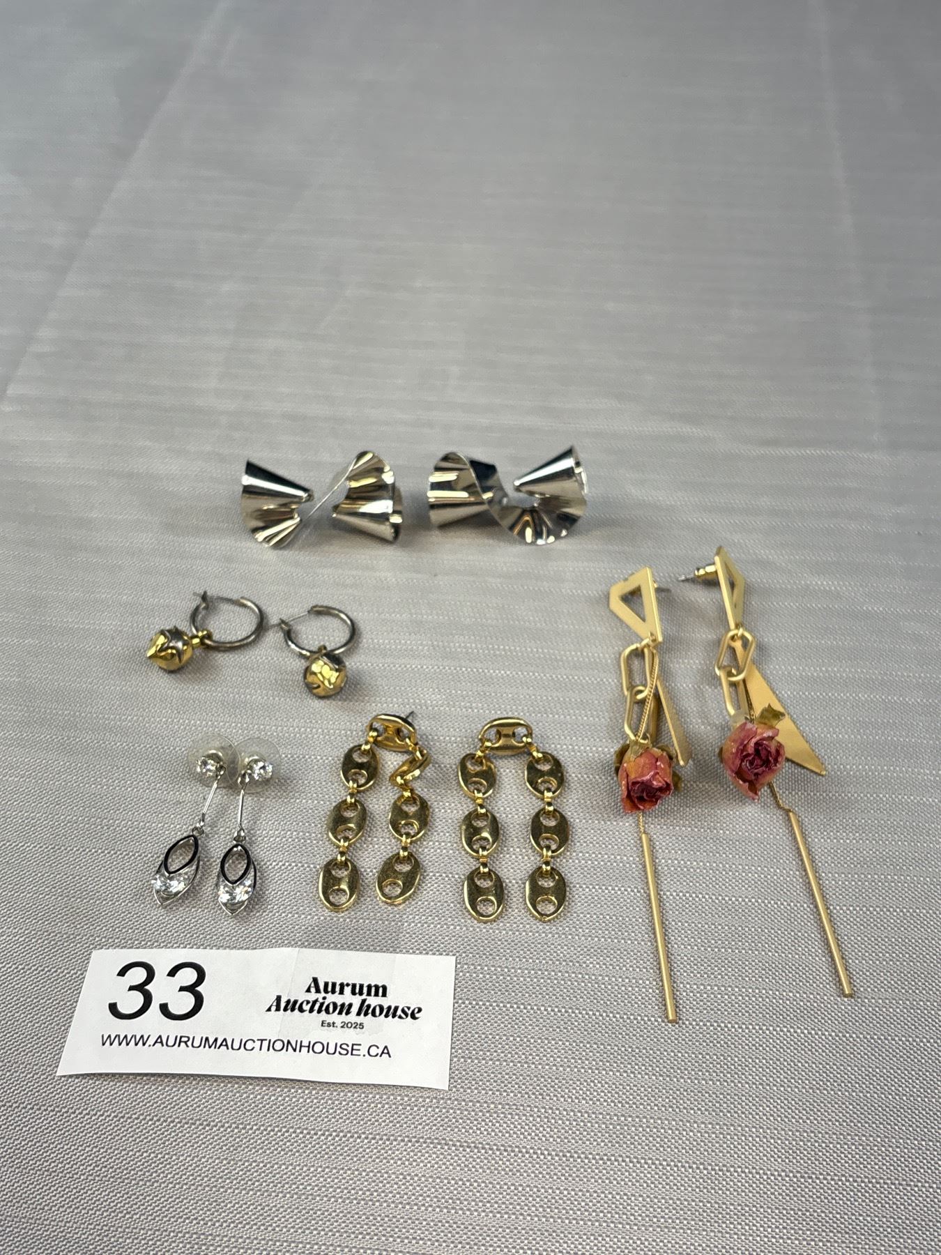5 Pairs Of Vintage Geometric Stud Pierced Earring Lot