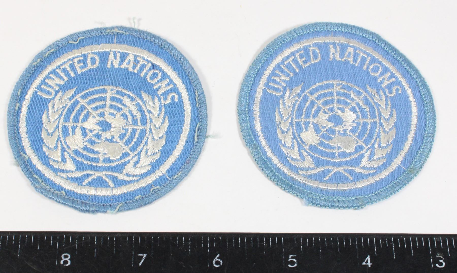 Pair lot of 2 English Language 1960's 1970's United Nations Uniform Insignia Peacekeeping
