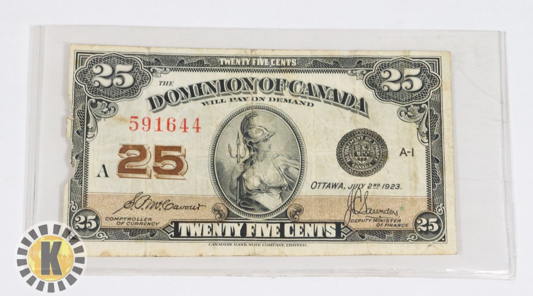 #530 DOMINION OF CANADA 25 CENT BILL 1923