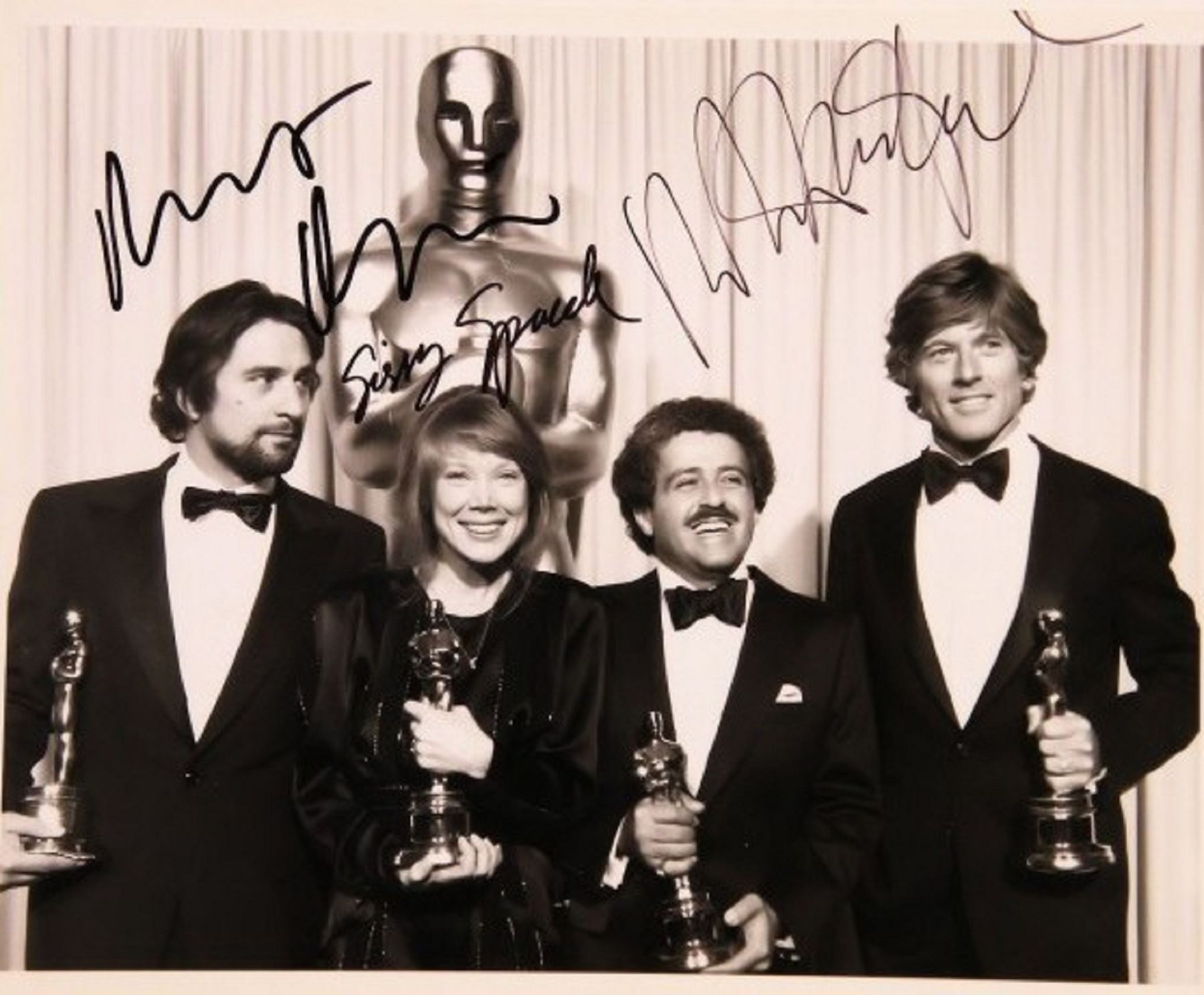 8 in. by 10 in. Black and white 53rd Annual Academy Awards Photo autographed by Robert Redford, Robert DeNiro, and Sissy Spacek.