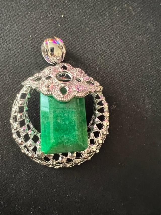 54 Carat Genuine Emerald Silver Pendant W/GLA Certificate. Single Stone Genuine 54 Carat Emerald
