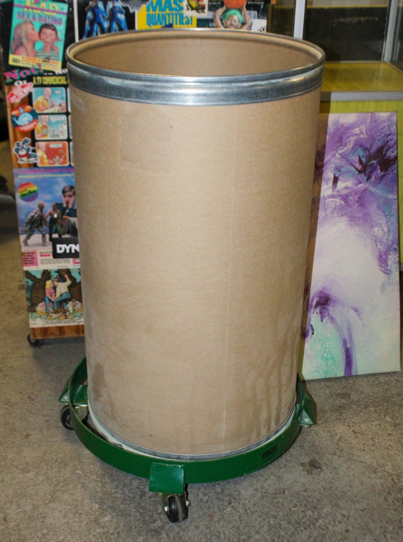 55 GALLON FIBER DRUM WITH DOLLY