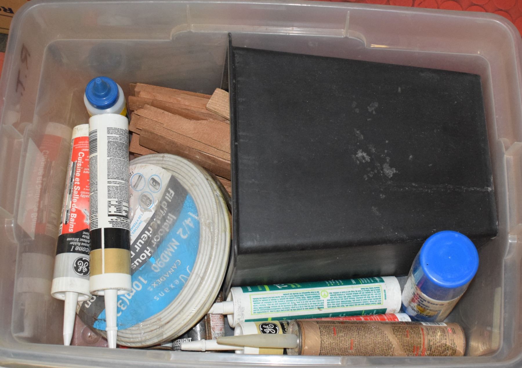 HOME RENO PRODUCTS INCL. NEW TUBES OF KITCHEN & BATH SILICONE, TUB AND SHOWER ADHESIVE, SPRAY TEXTURE CEILING, CEDAR SHIMS, 14/2 NMD 90 WIRE, ETC.