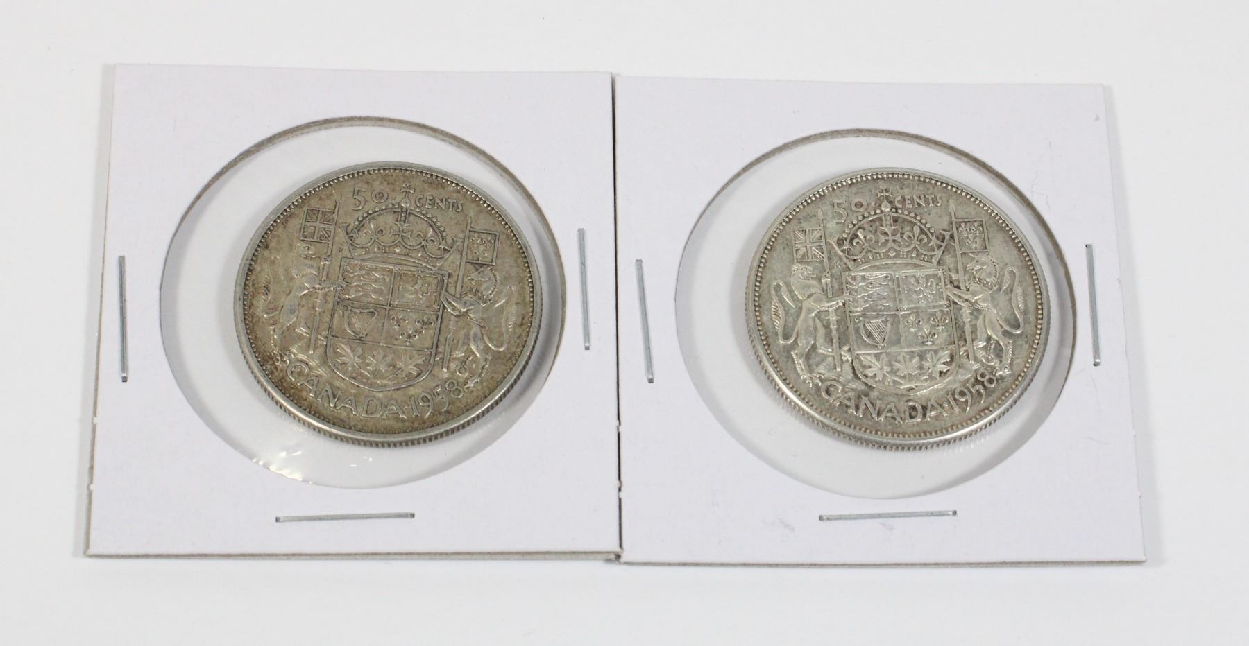 #56 1958 CANADA 1952 SILVER 50 CENT COIN LOT OF 2