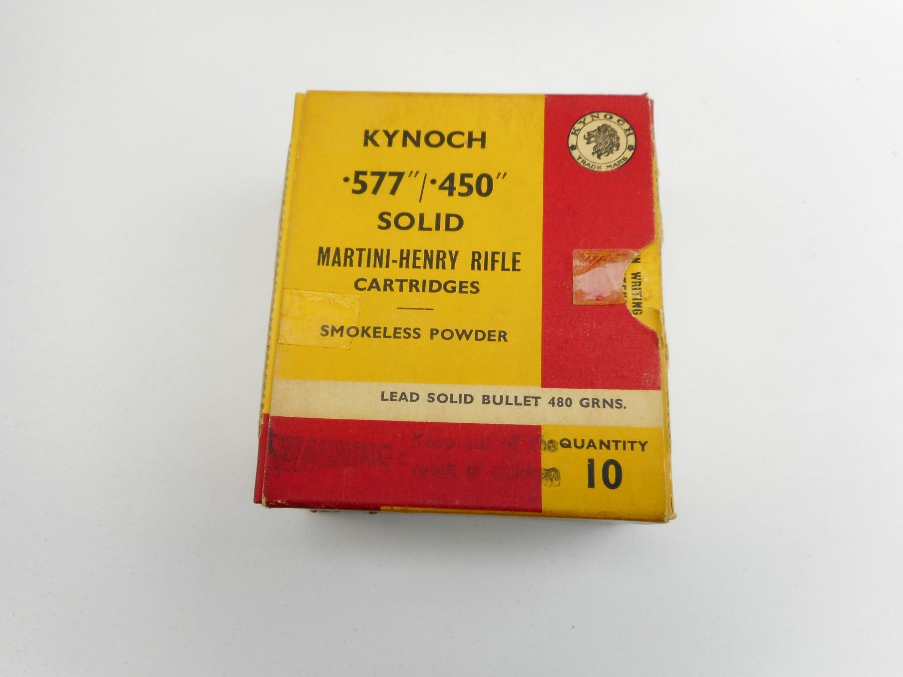 .577/.450 MARTINI-HENRY RIFLE AMMO , 10 RNDS .577/.450 SOLID MARTINI-HENRY KYNOCH AMMO