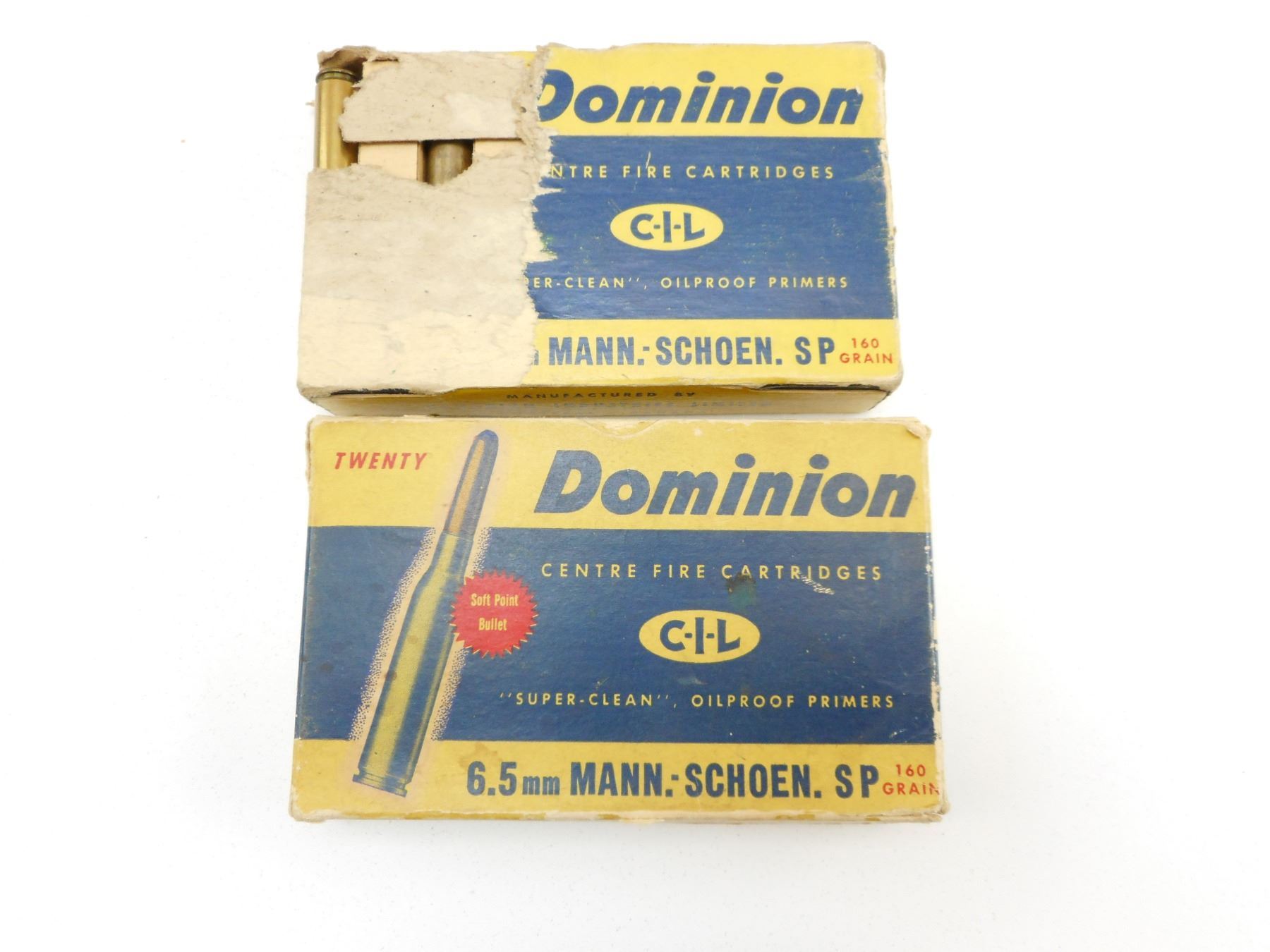 6.5MM MANN.-SCHOEN. SP AMMO , 37 RNDS 6.5MM MANN.-SCHOEN. SP AMMO, IN VINTAGE DOMINION BOX