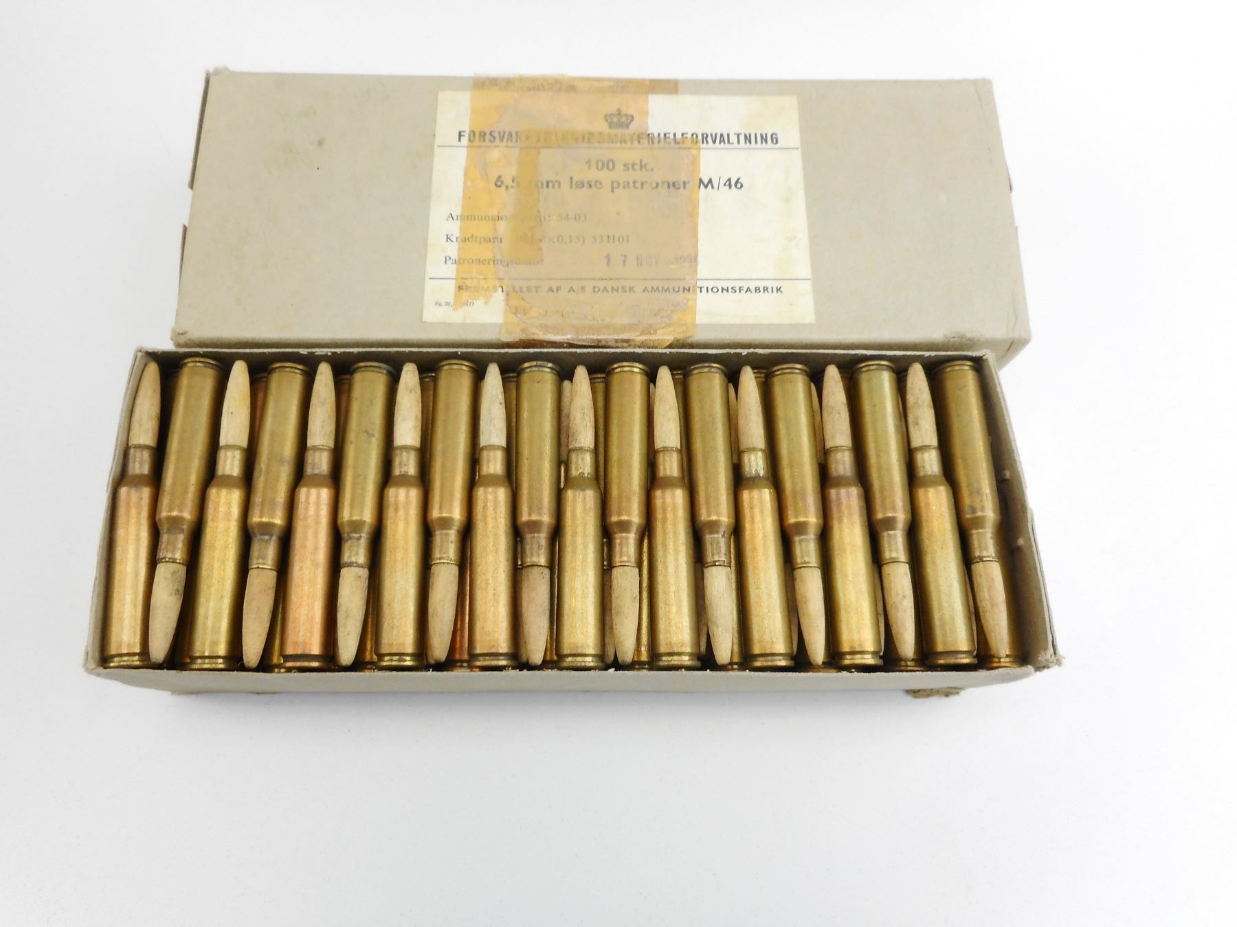 6.5MM SWEDISH MILITARY WOODEN TIPPED BLANKS, DANICH MADE AMMO, 100 RNDS 6.5MM SWEDISH MAUSER