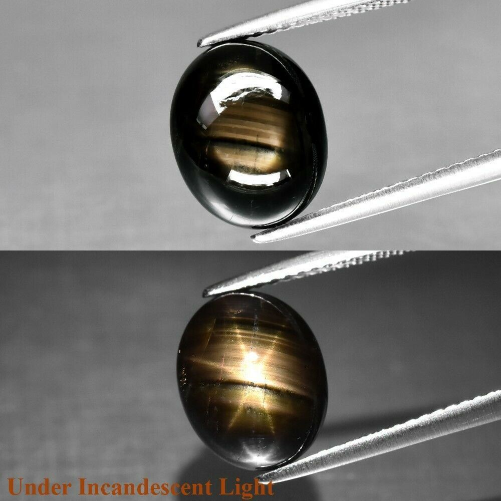 6.65ct Oval Natural Black-Dark Green 6 Ray Star Sapphire (Heated Glass Filling)