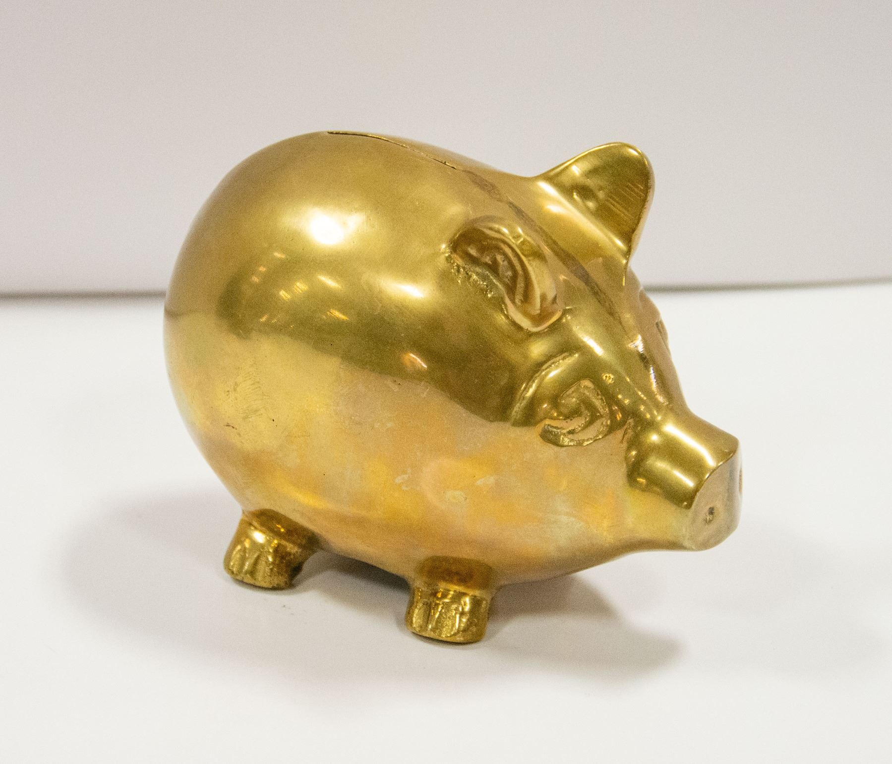 6" BRASS PIG PIGGY BANK (EMPTY)