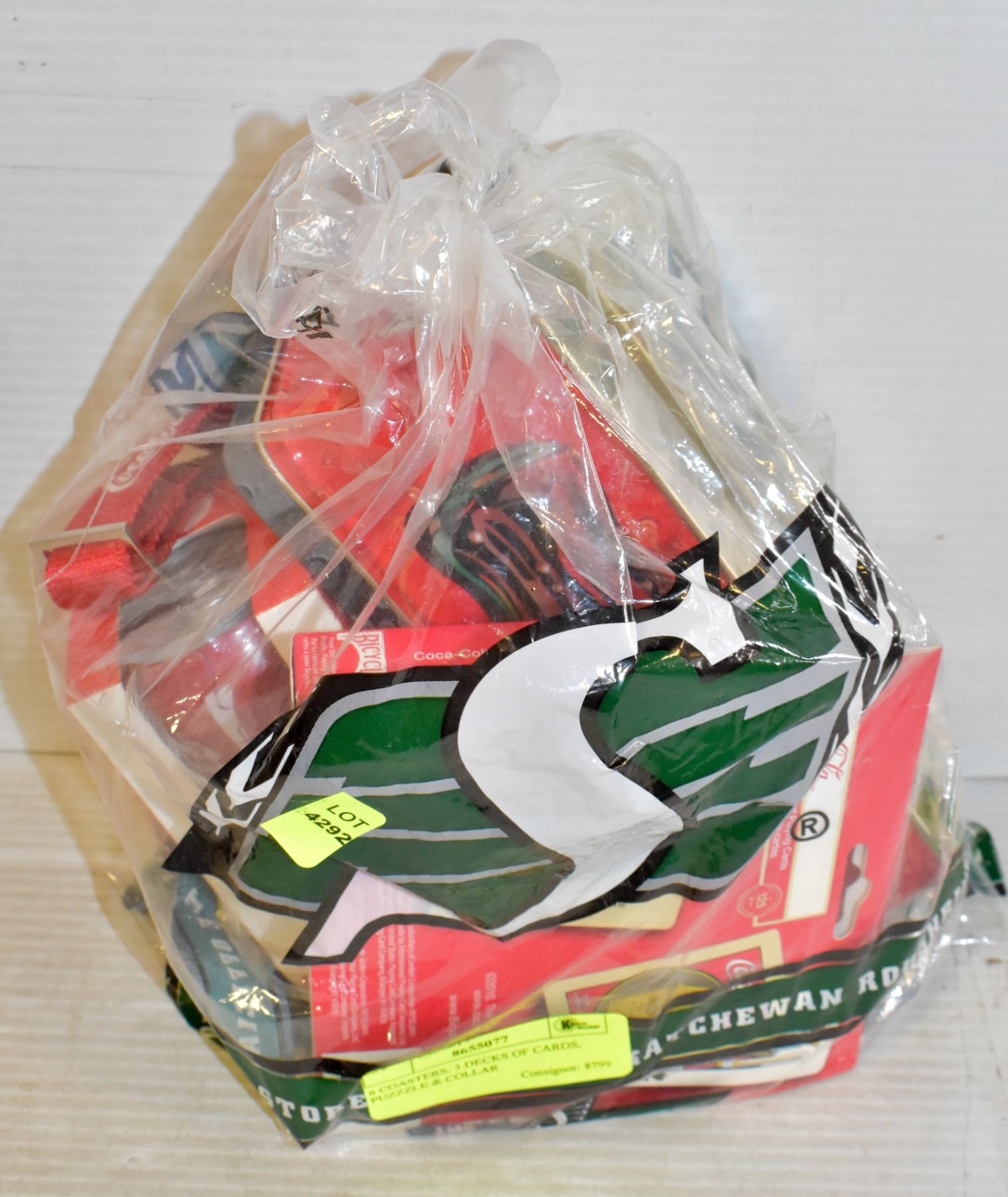 6 COASTERS, 3 DECKS OF CARDS, PUZZZLE & COLLAR
