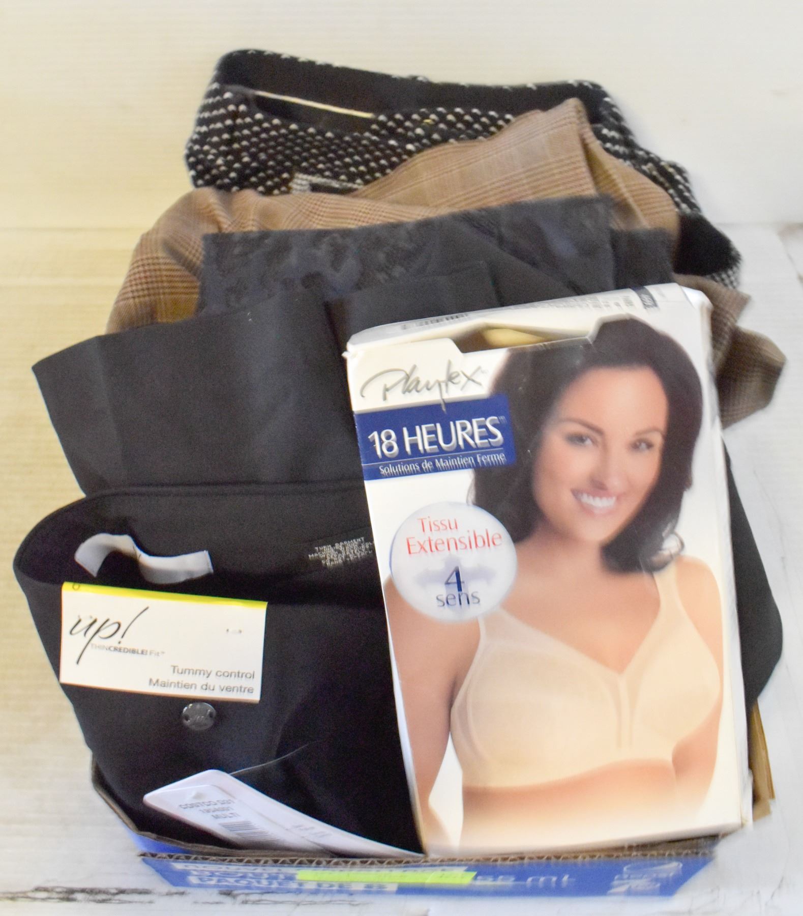 6 NEW PAIRS OF SIZE 4-6 WOMENS PANTS & D BRA