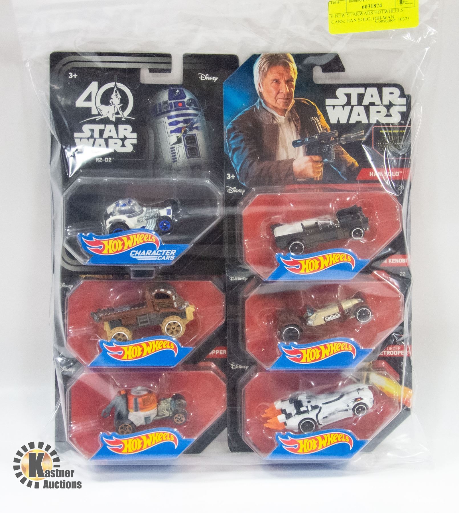 6 NEW STARWARS HOTWHEELS CARS: HAN SOLO, OBI-WAN