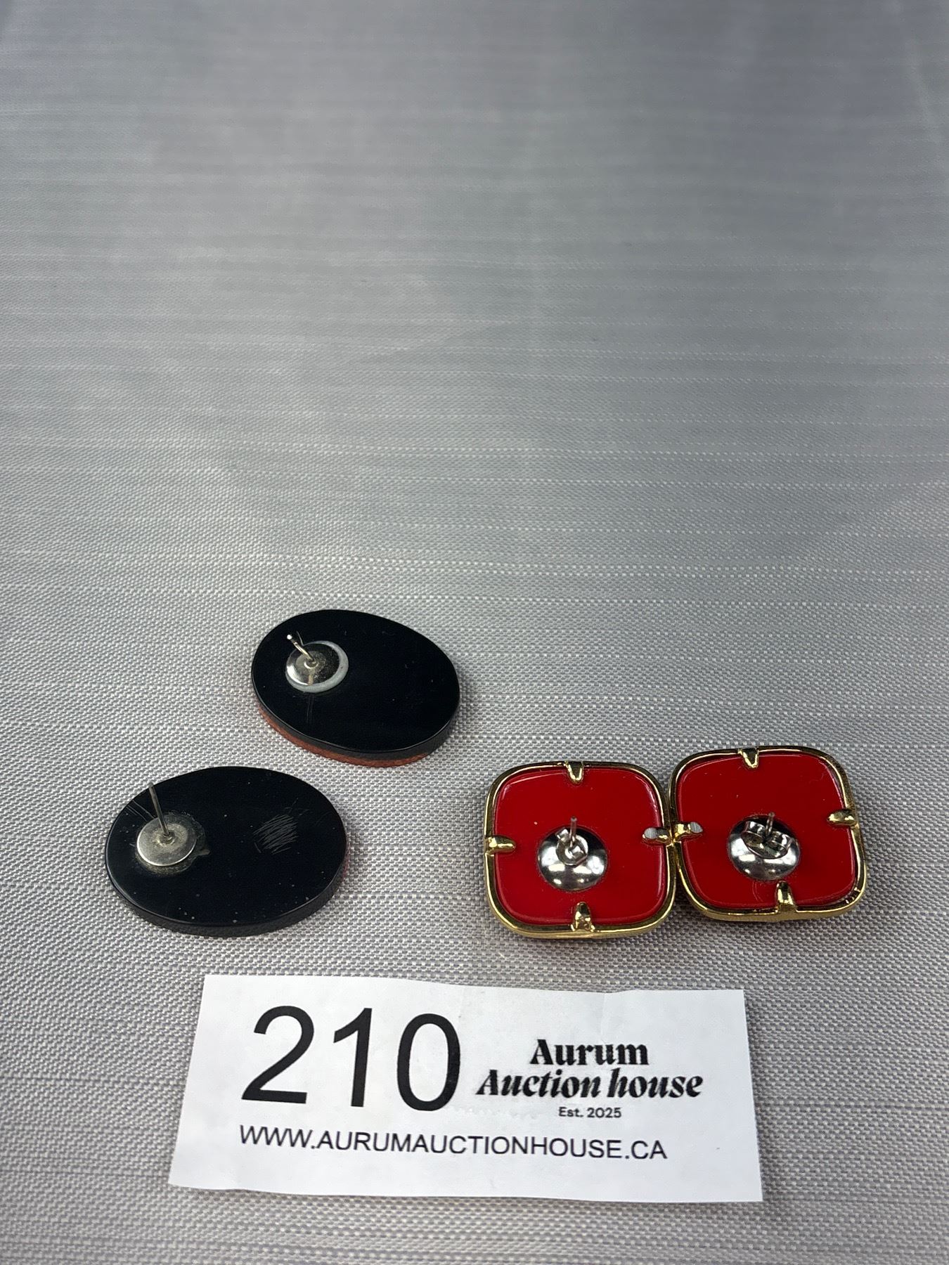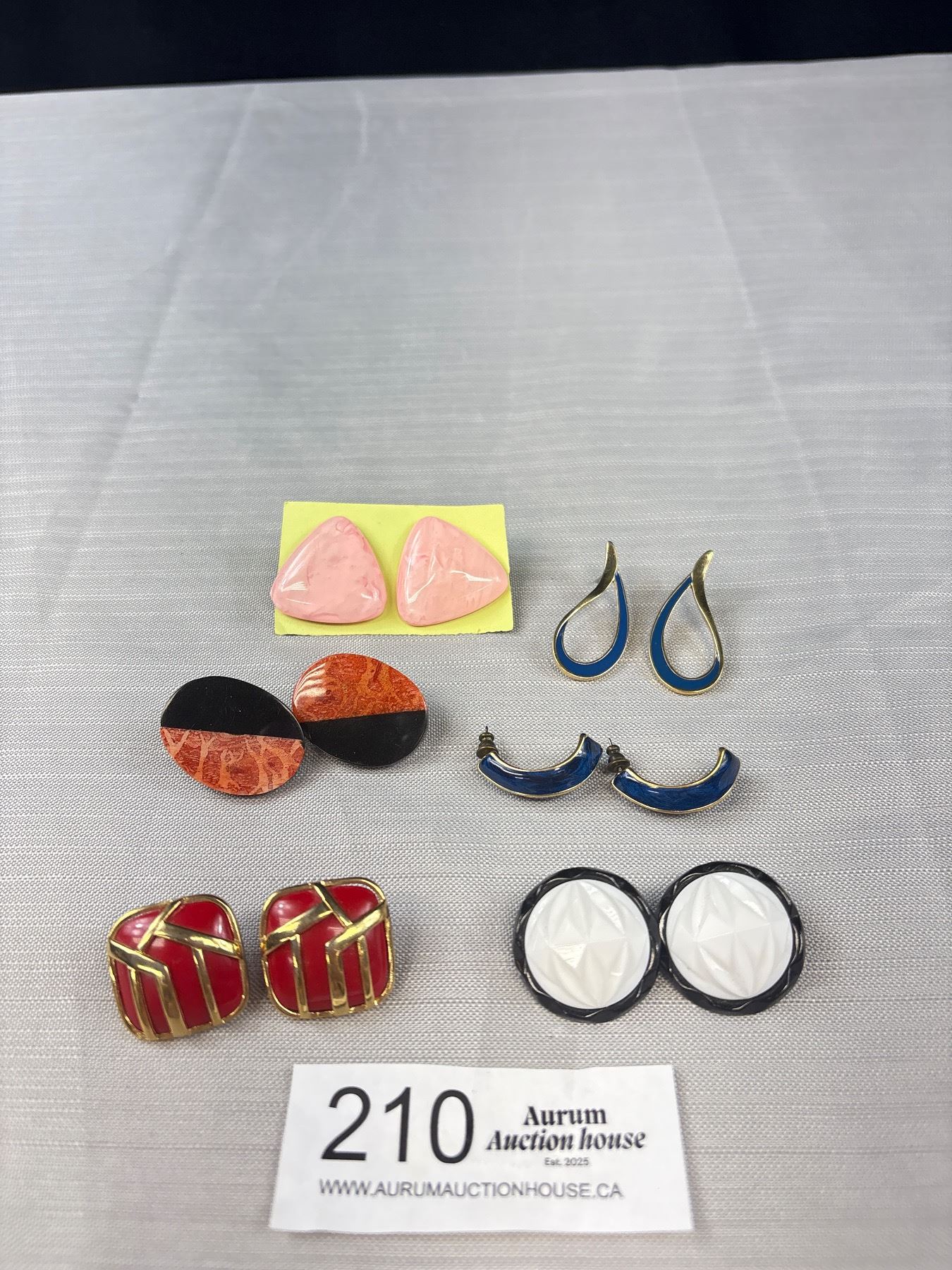 6 Pairs Of Quality Vintage Pierced Earrings - Enamelled, Lucite & Button