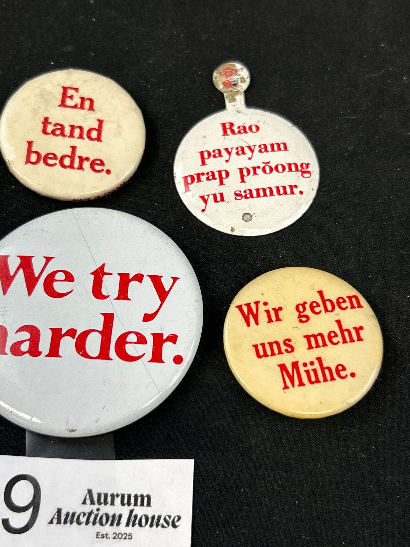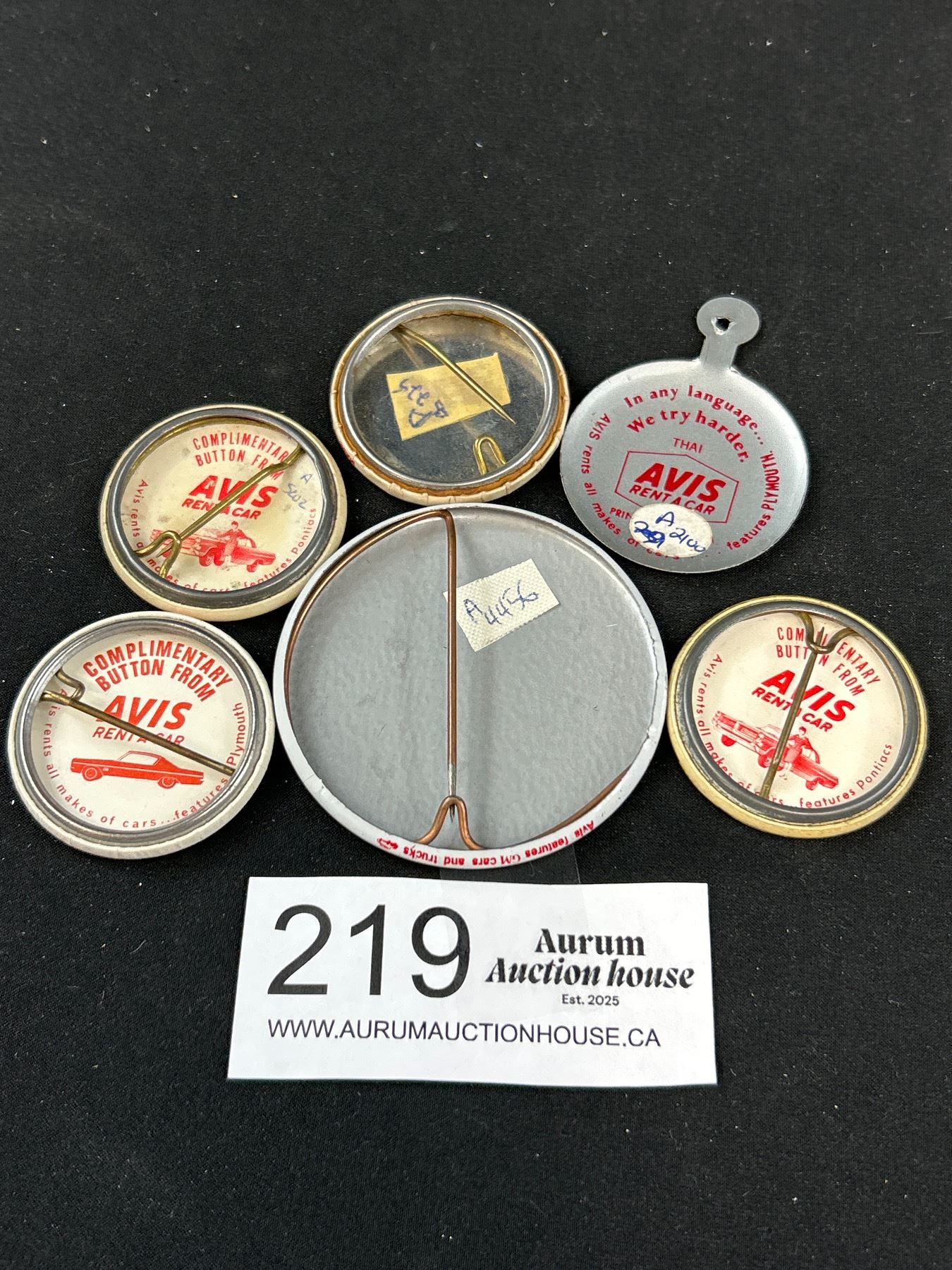 6 Vintage 1960s Avis Rent A Car Badges (Mostly European)