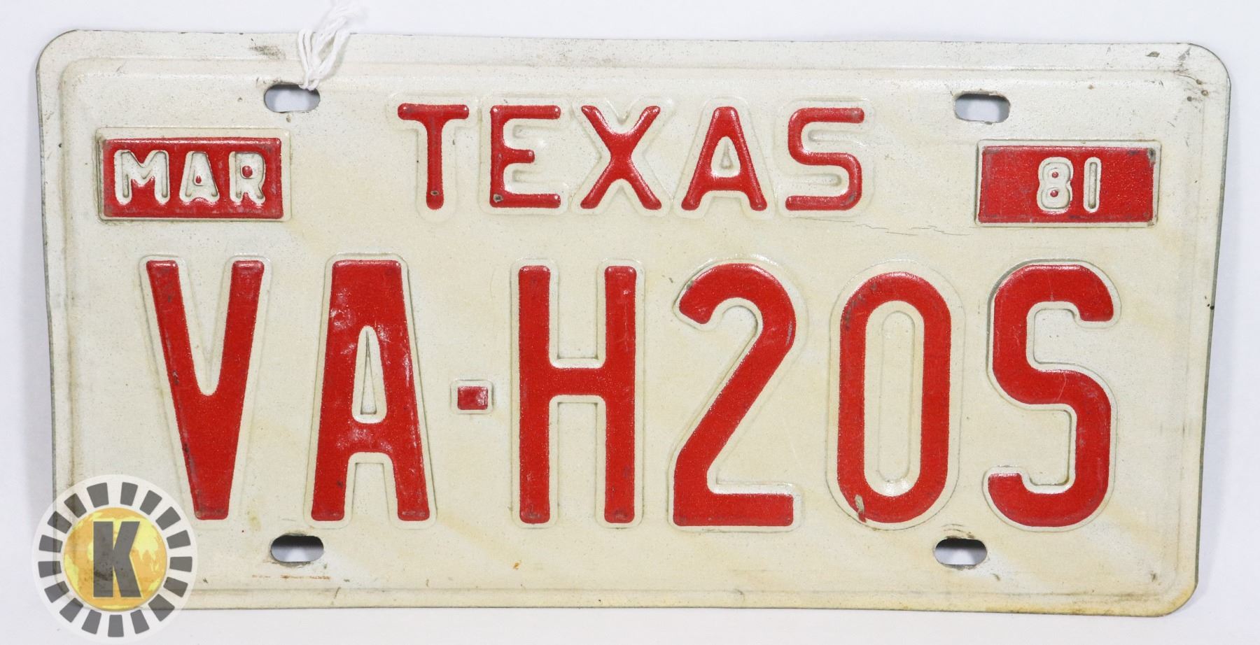 #644 U.S.A. LICENCE PLATE 1981 TEXAS VA-H20S