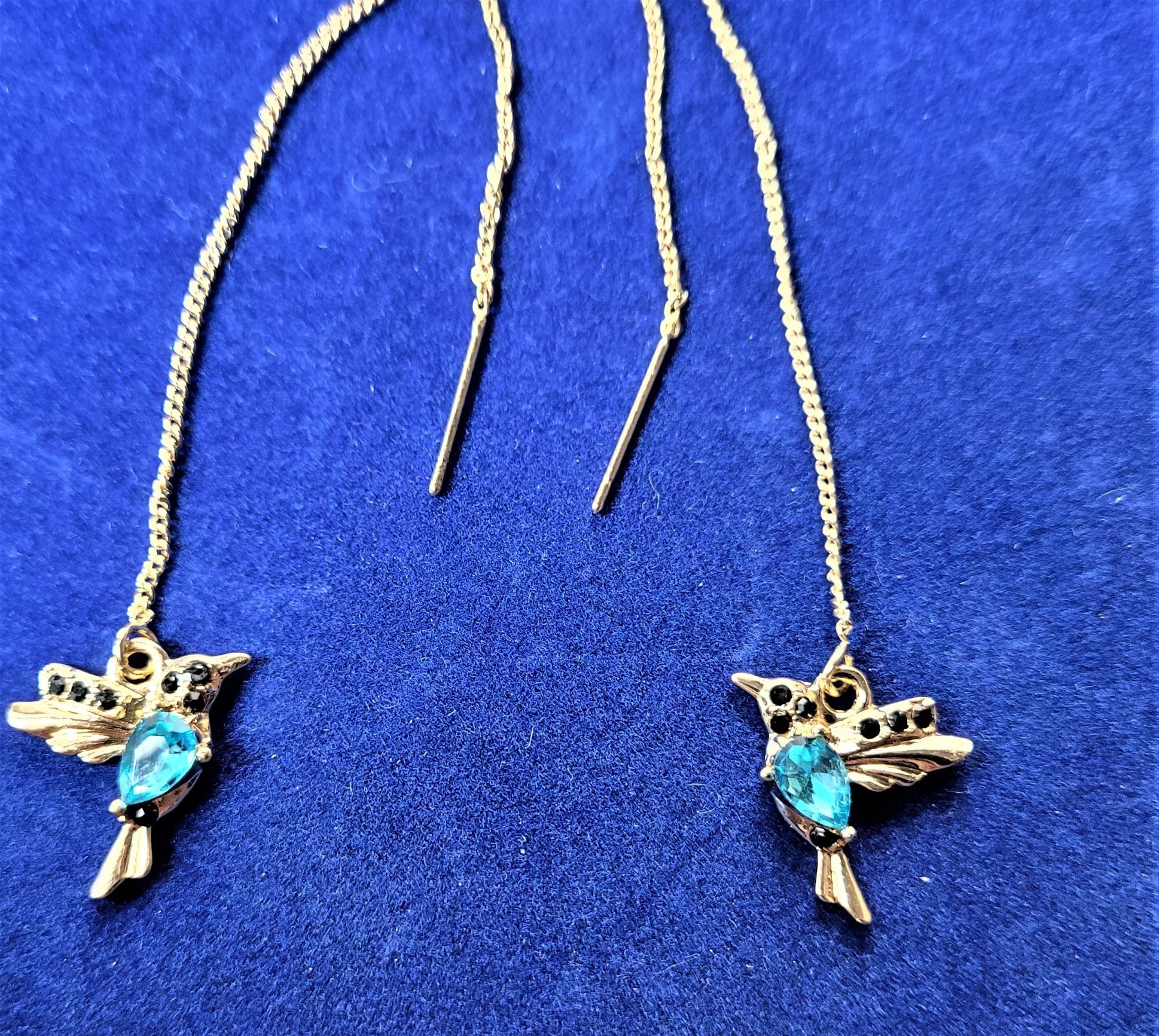 EARRINGS WITH BLUE RHINESTONES.