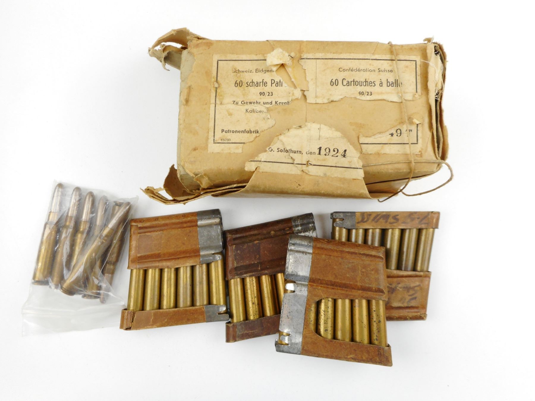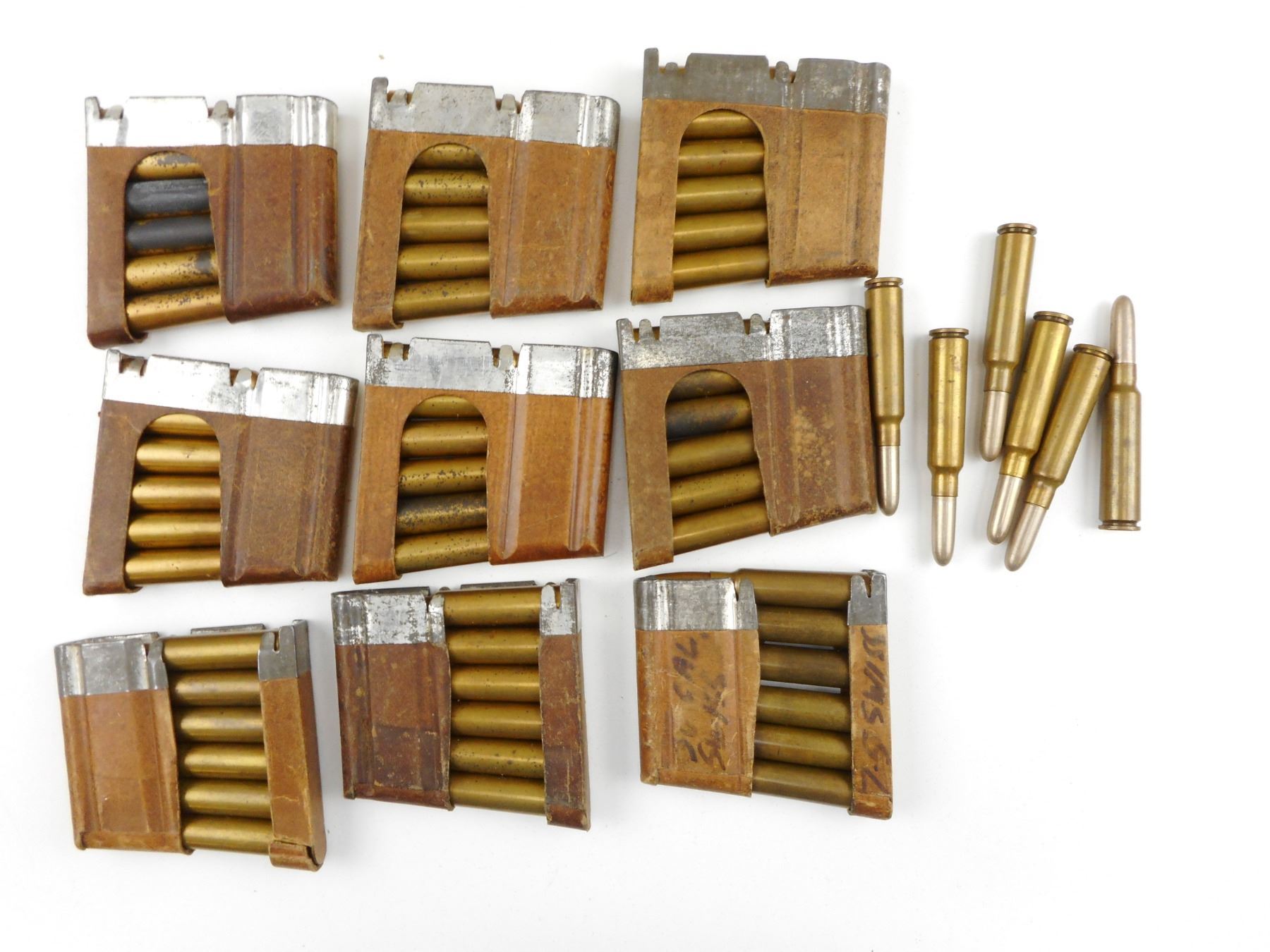 7.5 SWISS (.30 CAL. SWISS) AMMO , 60 RNDS 7.5 SWISS AMMO, SOME IN CLIPS