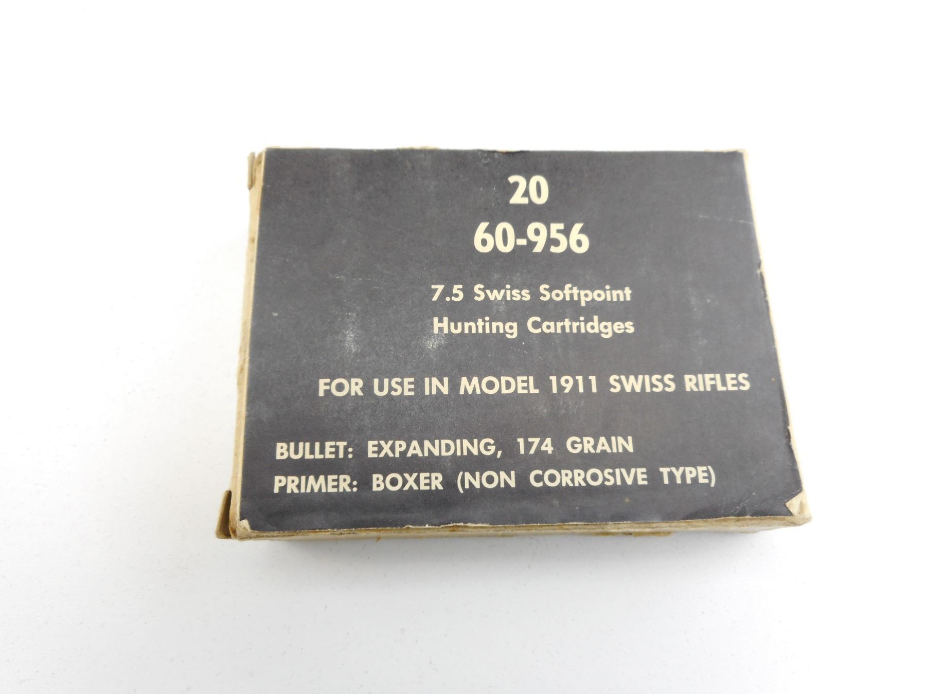7.5 SWISS AMMO , 20 RNDS 7.5 SWISS SOFTPOINT HUNTING AMMO, FOR USE IN MODEL 1911 SWISS RIFLES, 174 GRNS