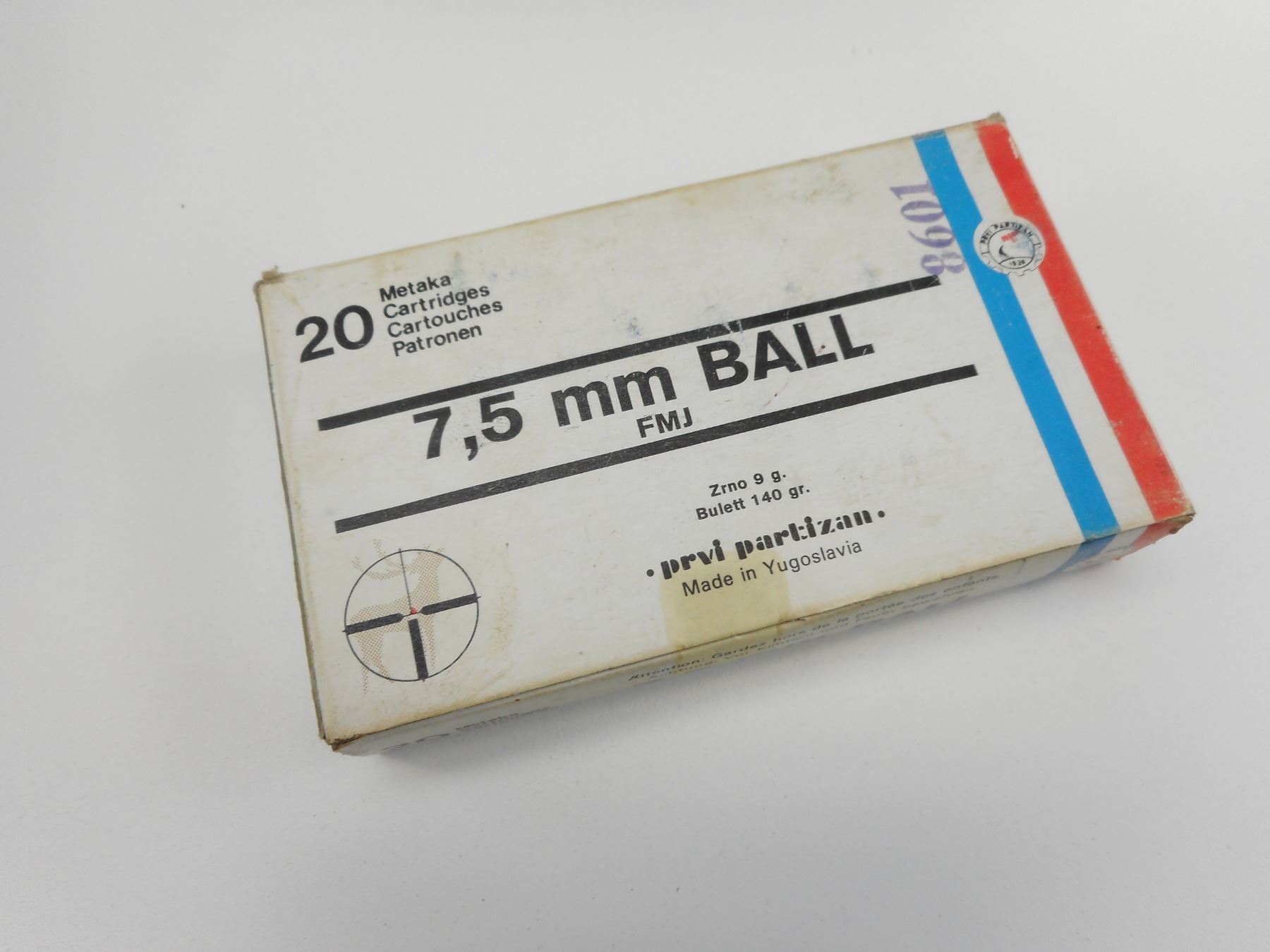 7.5MM AMMO, AND BRASS , 6 RNDS 7.5MM AMMO, AND 12 - 7.5MM BRASS