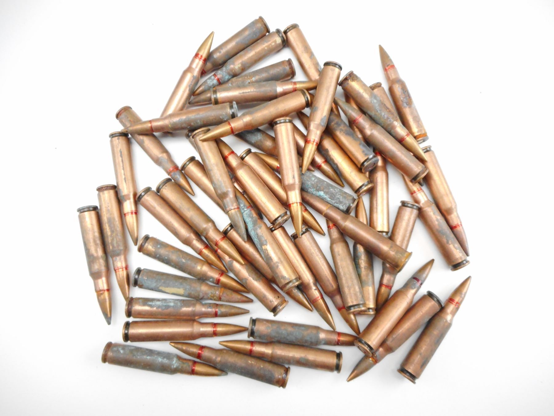 7.62 NATO AMMO , 54 RNDS 7.62 NATO AMMO MADE IN BULGARIA, STEEL CASE COPPER WASHED, SOME CORROSION