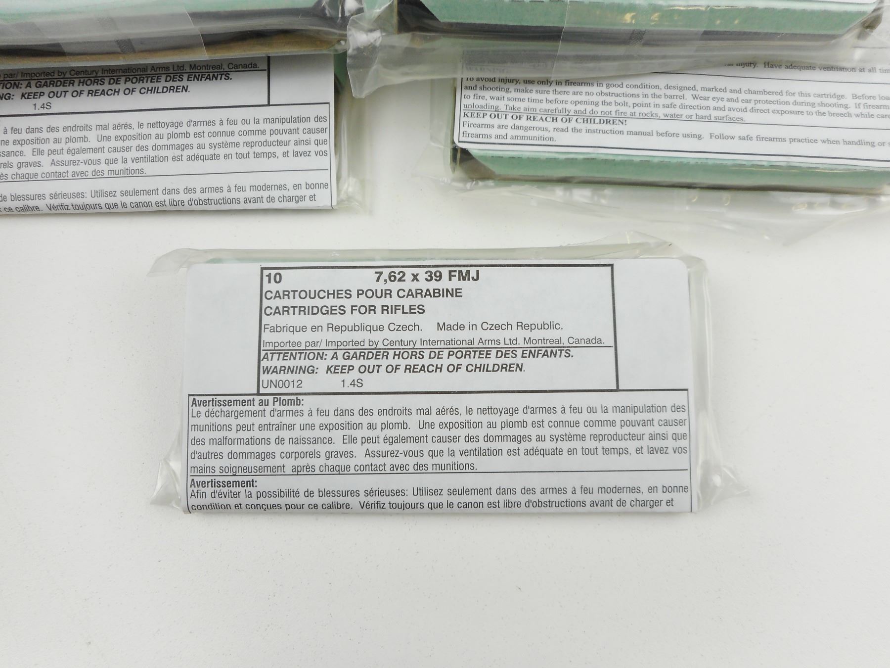 7.62 X 39 AMMO , 100 RNDS 7.62 X 39 FMJ, CENTURY INTL. ARMS LTD., SEALED PACKAGE