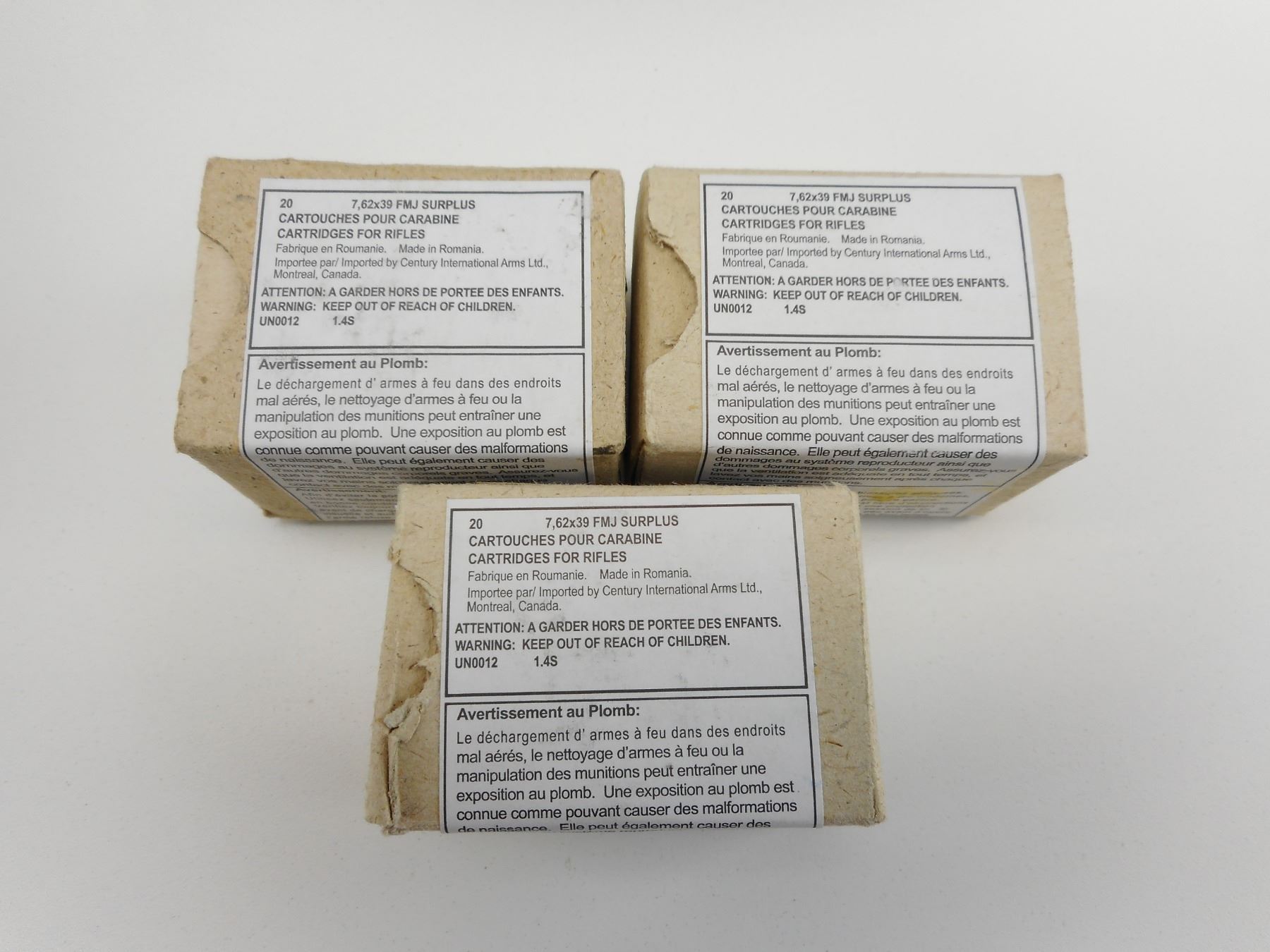 7.62 X 39 FMJ AMMO , 60 RNDS 7.62 X 39 FMJ SURPLUS AMMO