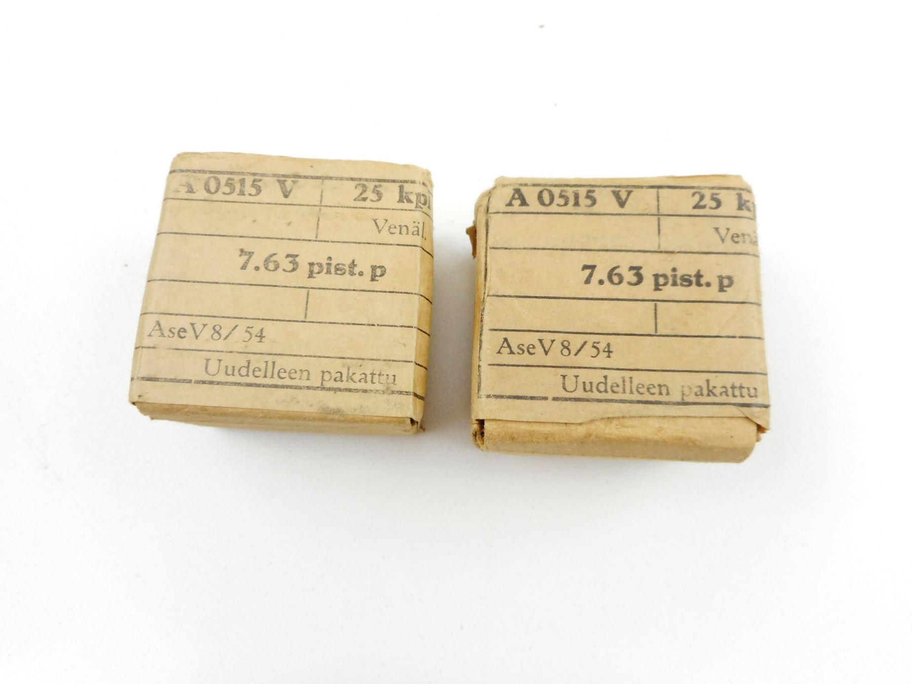 7.63 PIST. P AMMO , 50 RNDS 7.63 PIST. P UUDELLEEN PAKATTU AMMO FINNISH ISSUE