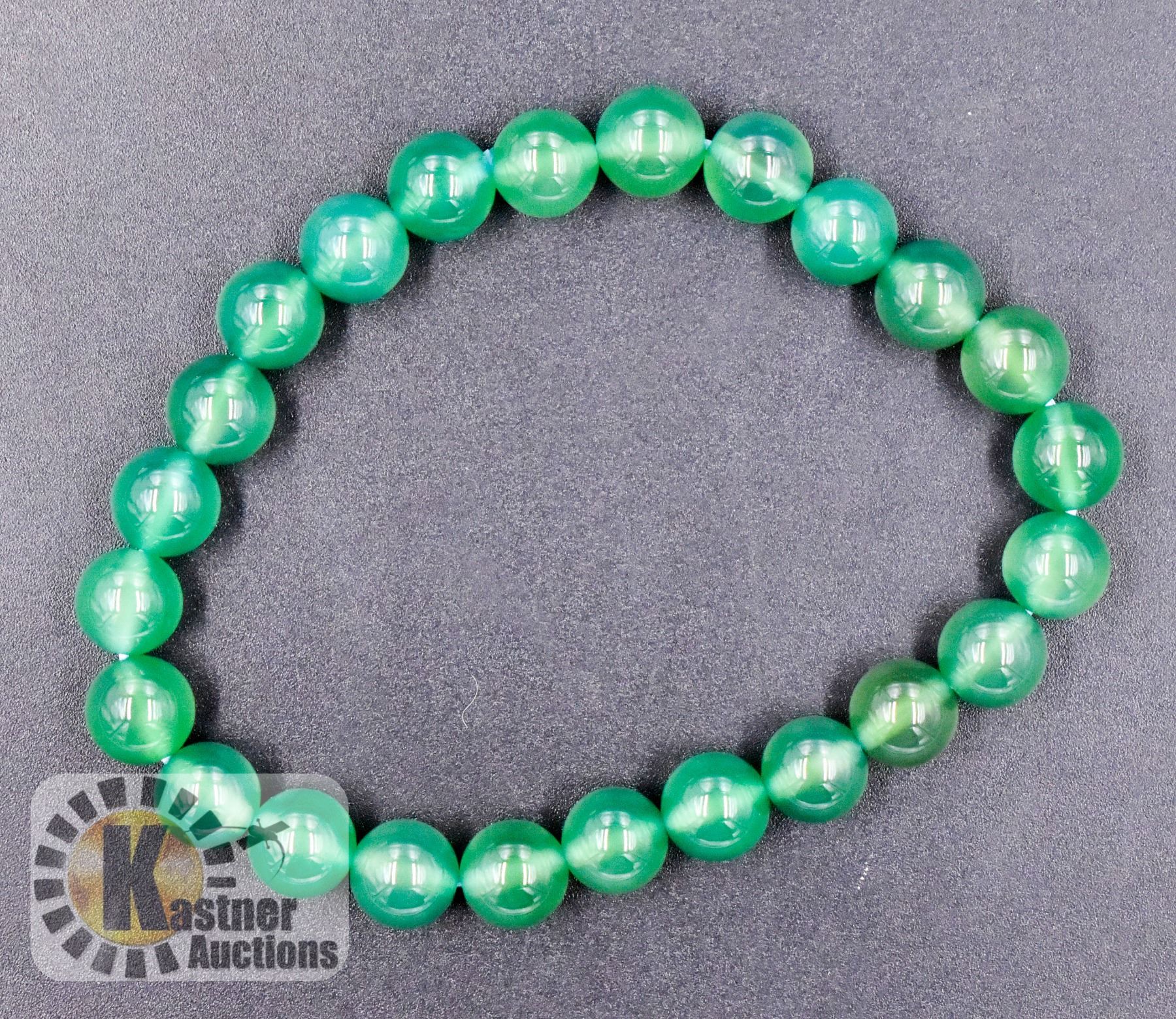 #78-NATURAL GREEN AGATE BEAD BRACELET 8MM/7.7