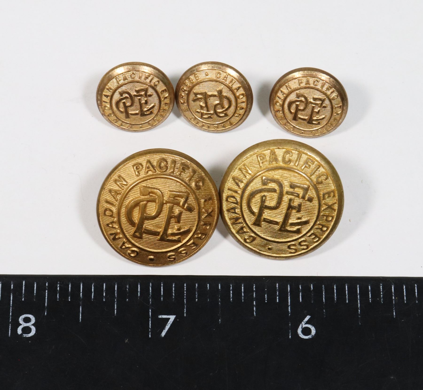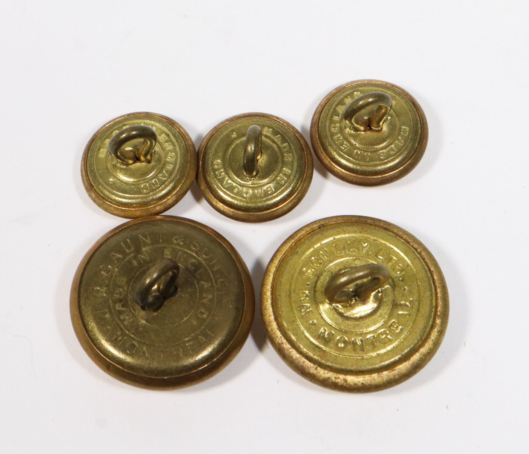 LOT OF 5 SCULLY MONTREAL MADE CANADA VINTAGE CANADIAN RAILWAY RAILROAD LOCOMOTIVE BUTTONS