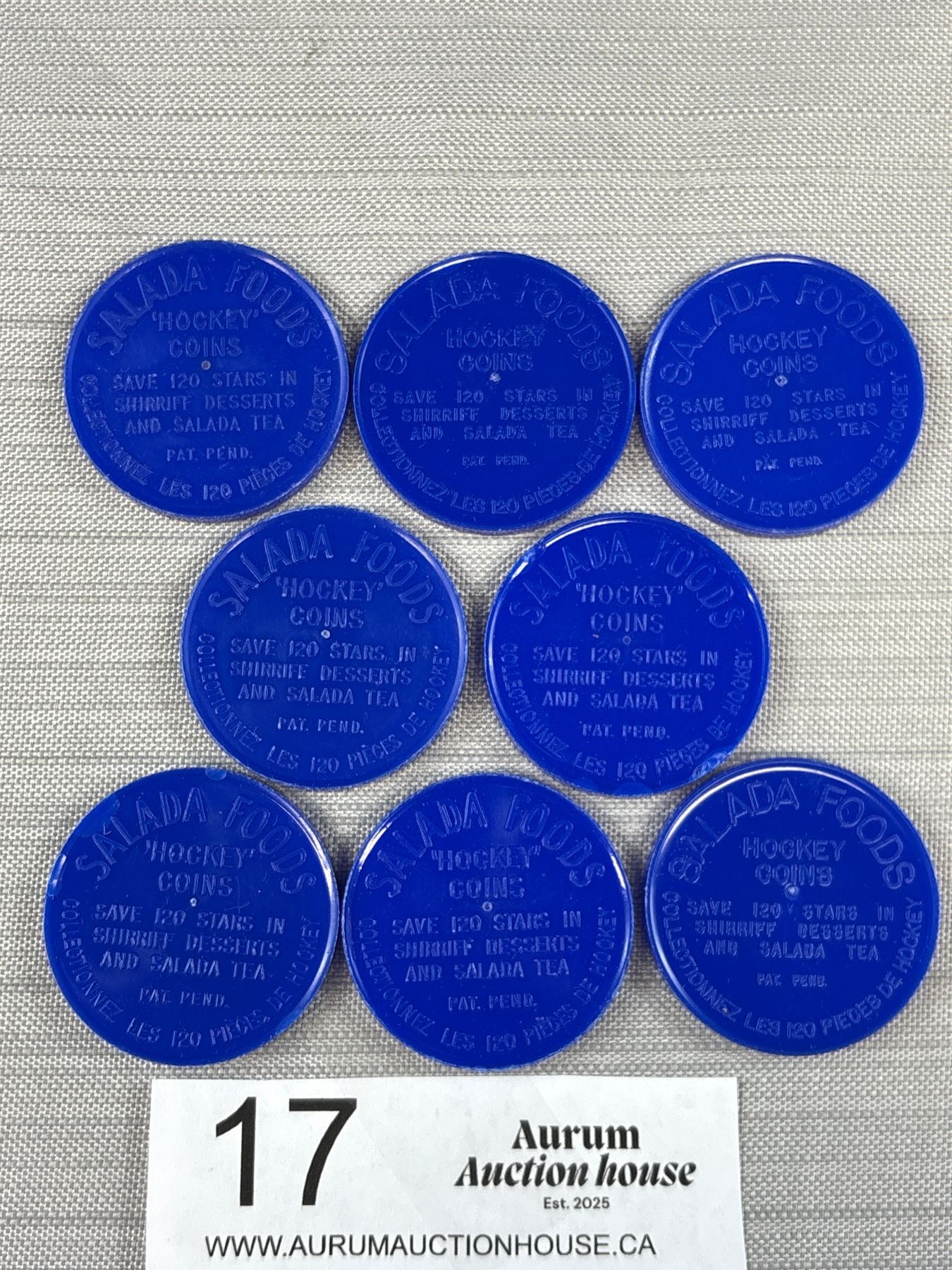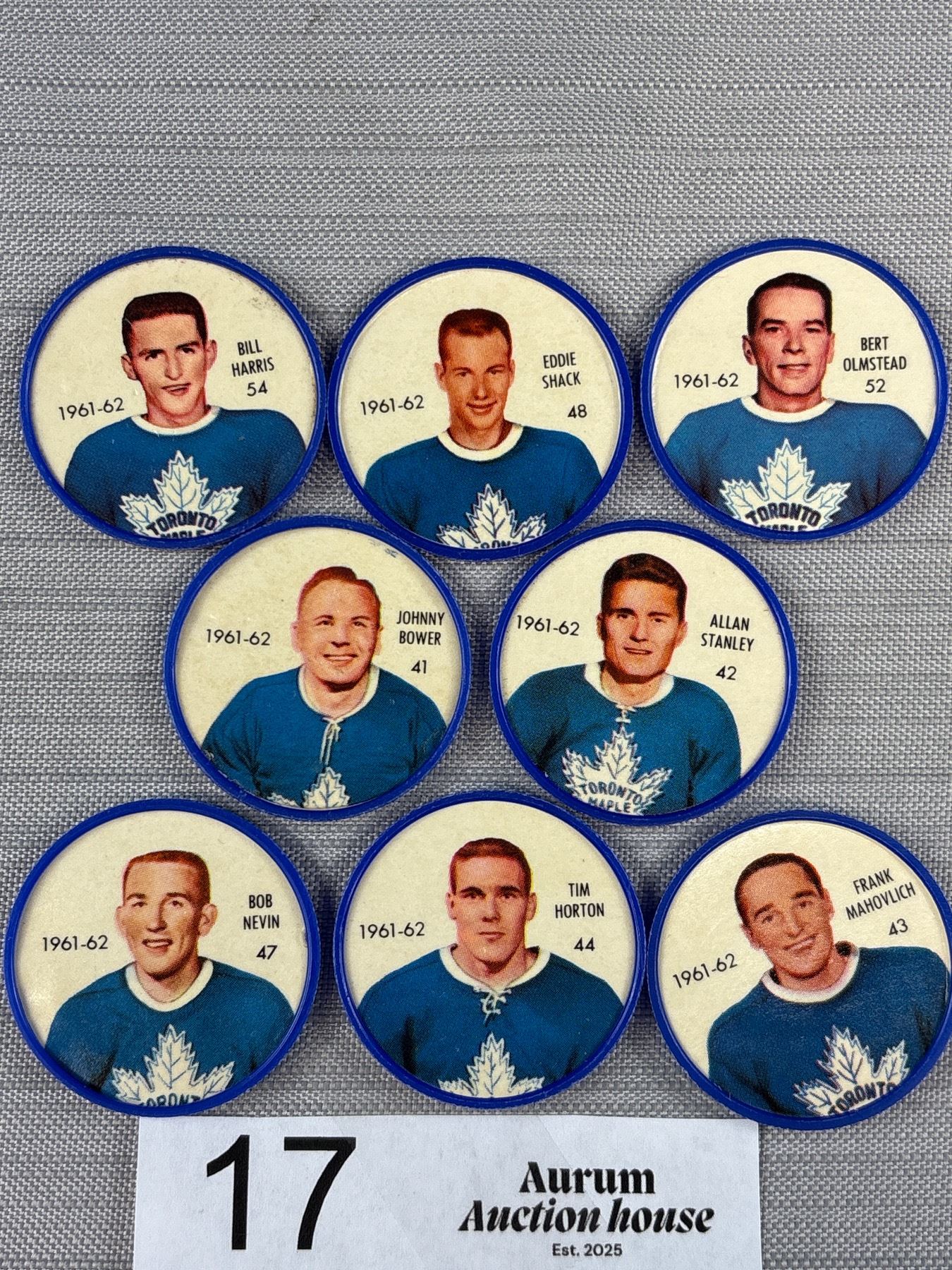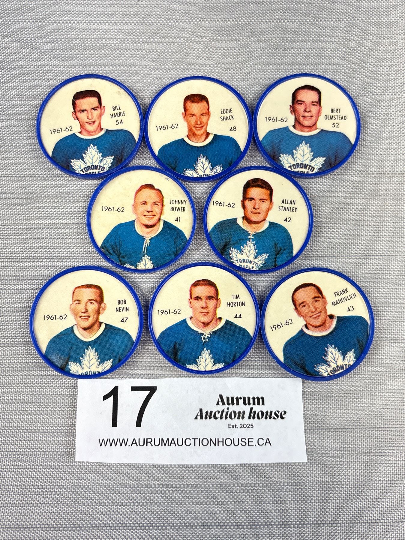 8 1961/62 Toronto Maple Leaf Salada Coins, Tim Horton, Frank Mahovilich, Johhny Bower, Eddie Shack P