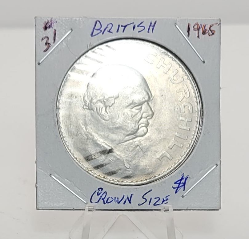 8) UK 1965 ONE CROWN COIN, HONORING WINSTON