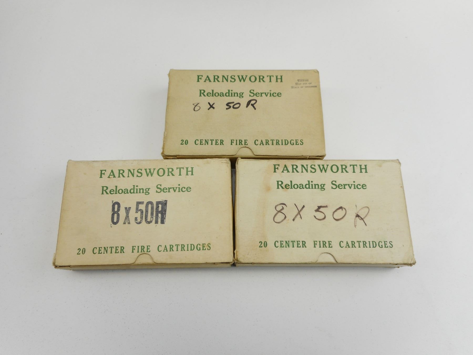 8 X 50R RELOADED AMMO , 60 RNDS 8 X 50R RELOADED AMMO, 8MM AUSTRO-HUNGARIAN ONE OF THE M95 MANNLICHER SHORT RIFLES DOES NOT HAVE AN "S" MARKED ON THE TOP OF THE CHAMBER - THIS 8 X 50 RIMMED FRITS THAT RIFLE - MAY BE BUDAPEST MADE M95