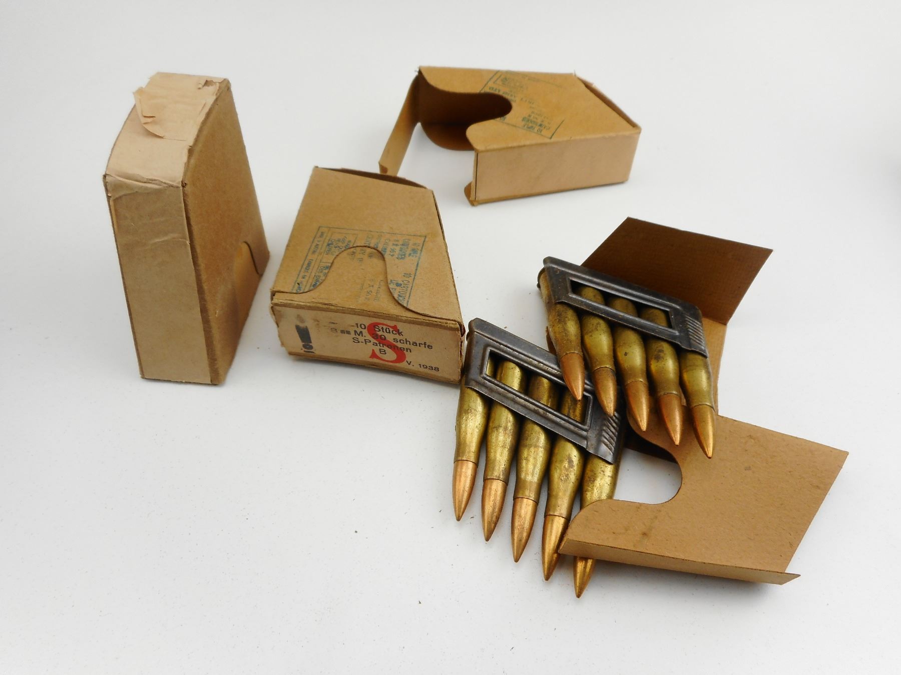 8 X 56R AMMO ON STIPPER CLIPS , 30 RNDS 8 X 56R AMMO, M.30 SCHARFE S-PATRONEN , DATED 1938