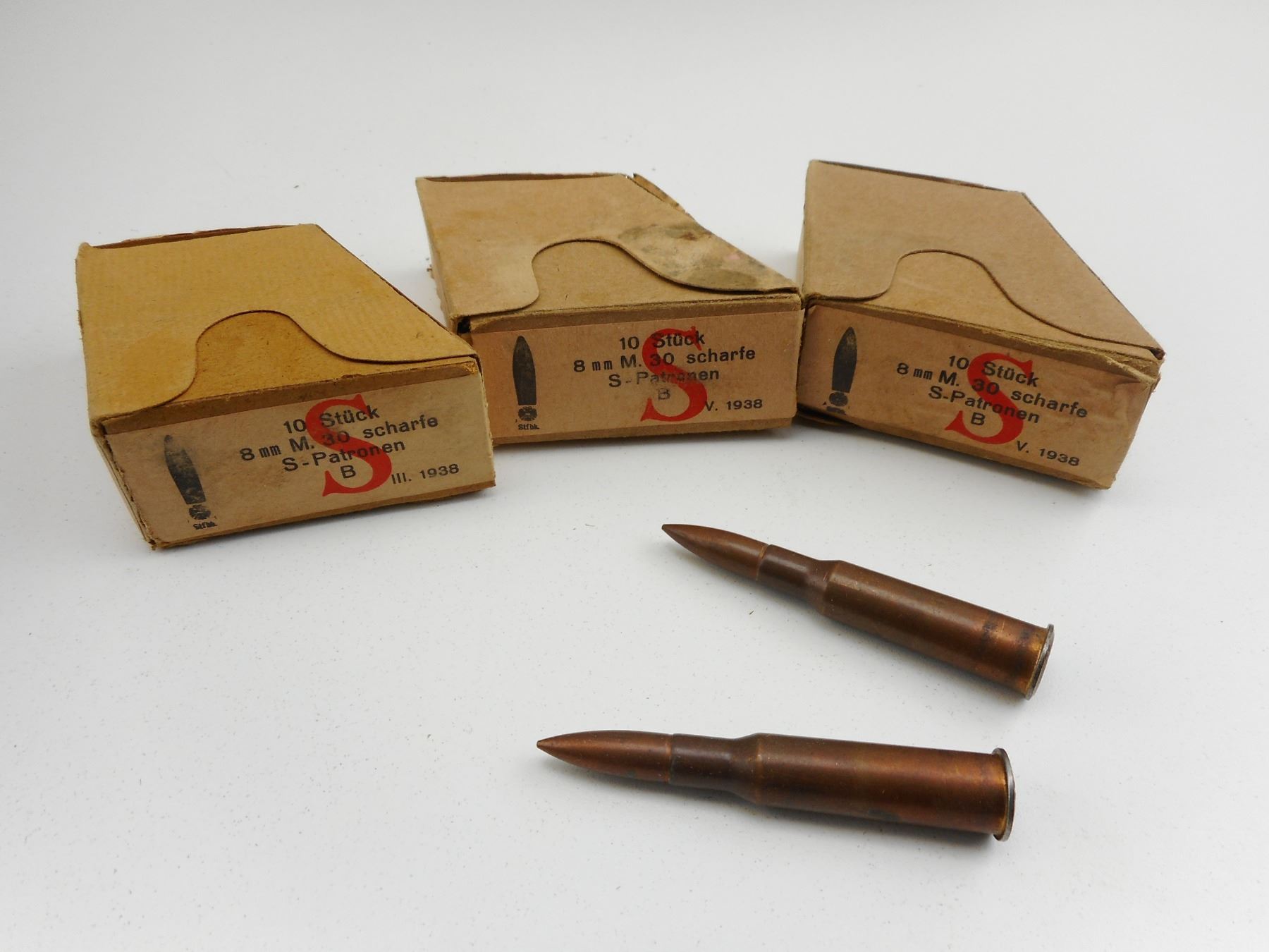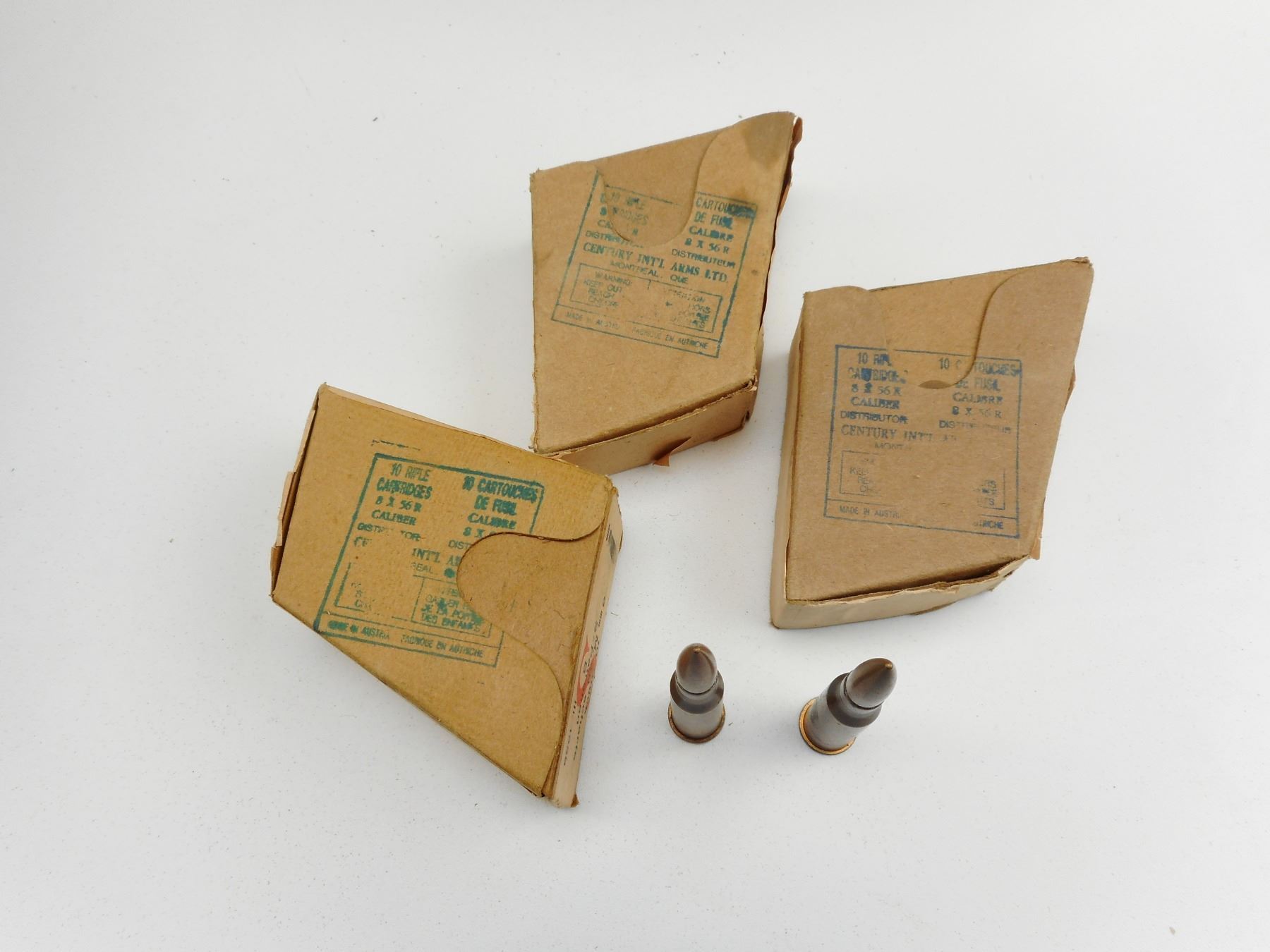 8 X 56R AMMO ON STRIPPER CLIPS , 32 RNDS 8 X 56R AMMO, M.30 SCHARFE S-PATRONEN, DATED 1938