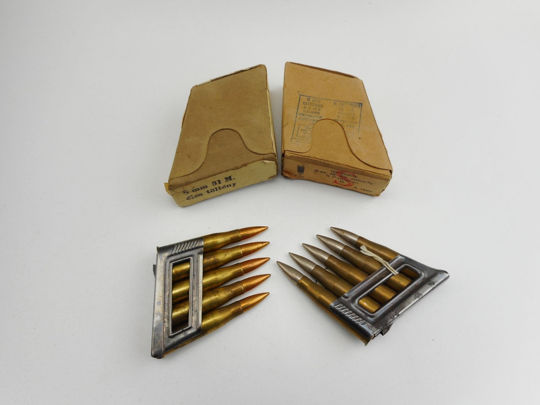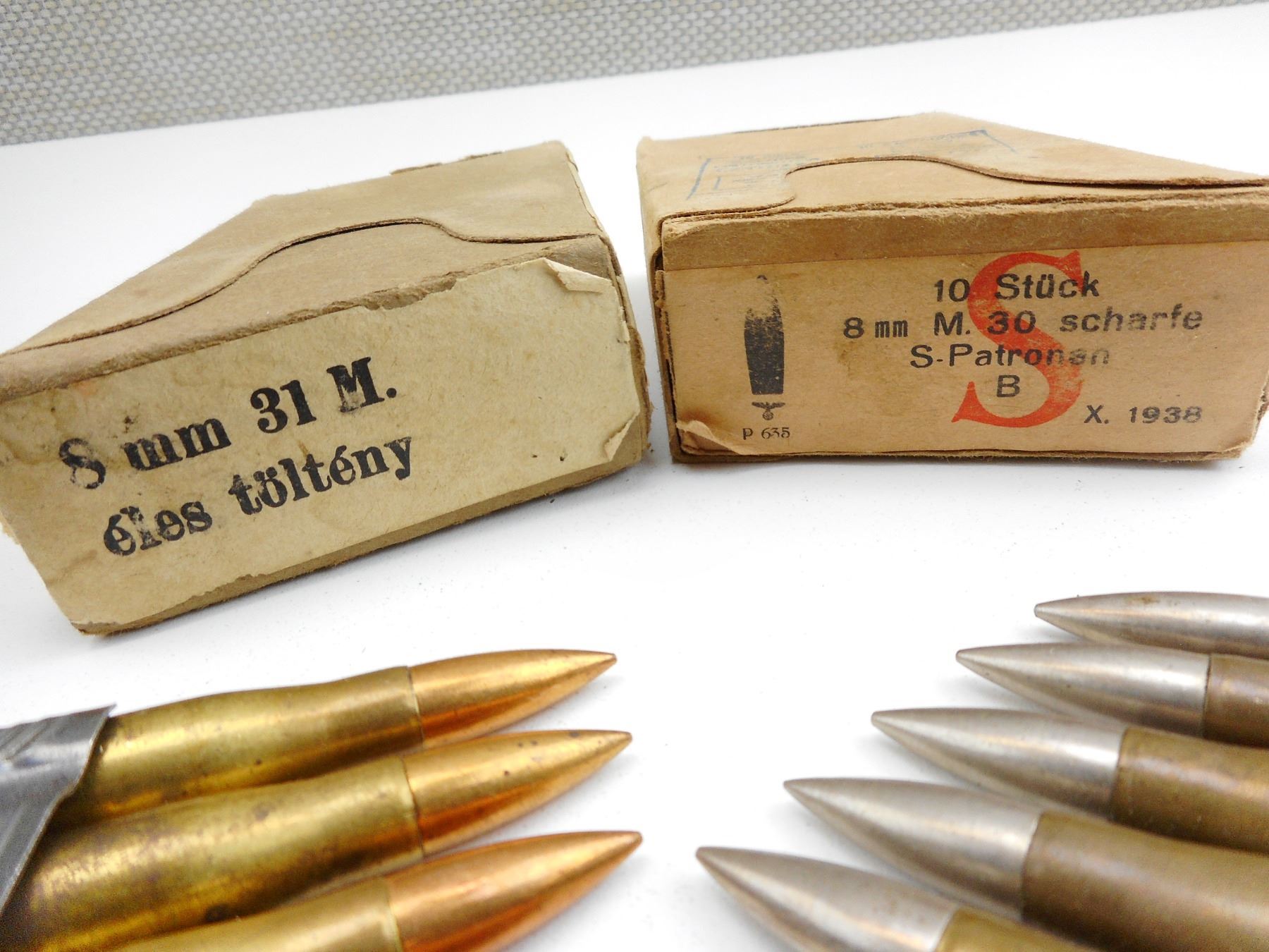8 X 56R AMMO ON STRIPPER CLIPS , 30 RNDS 8 X 56R AMMO, M.30 SCHARFE S-PATRONEN , DATED 1938