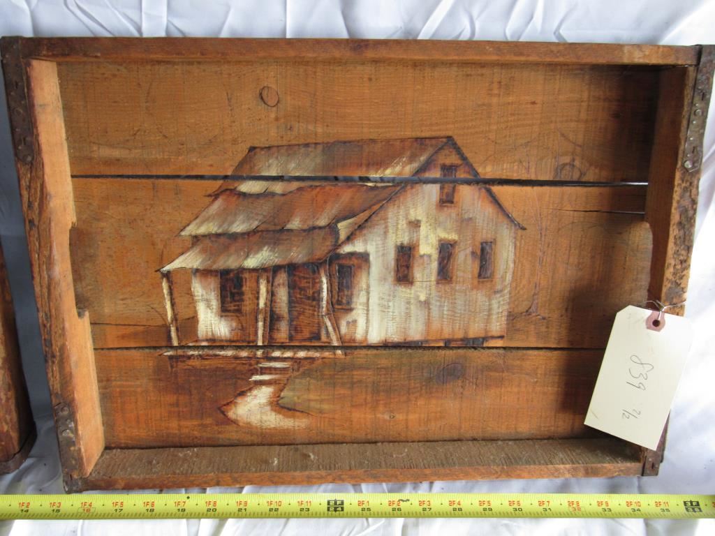 839 - Pair Of Vintage Hand Painted Wooden Serving Trays