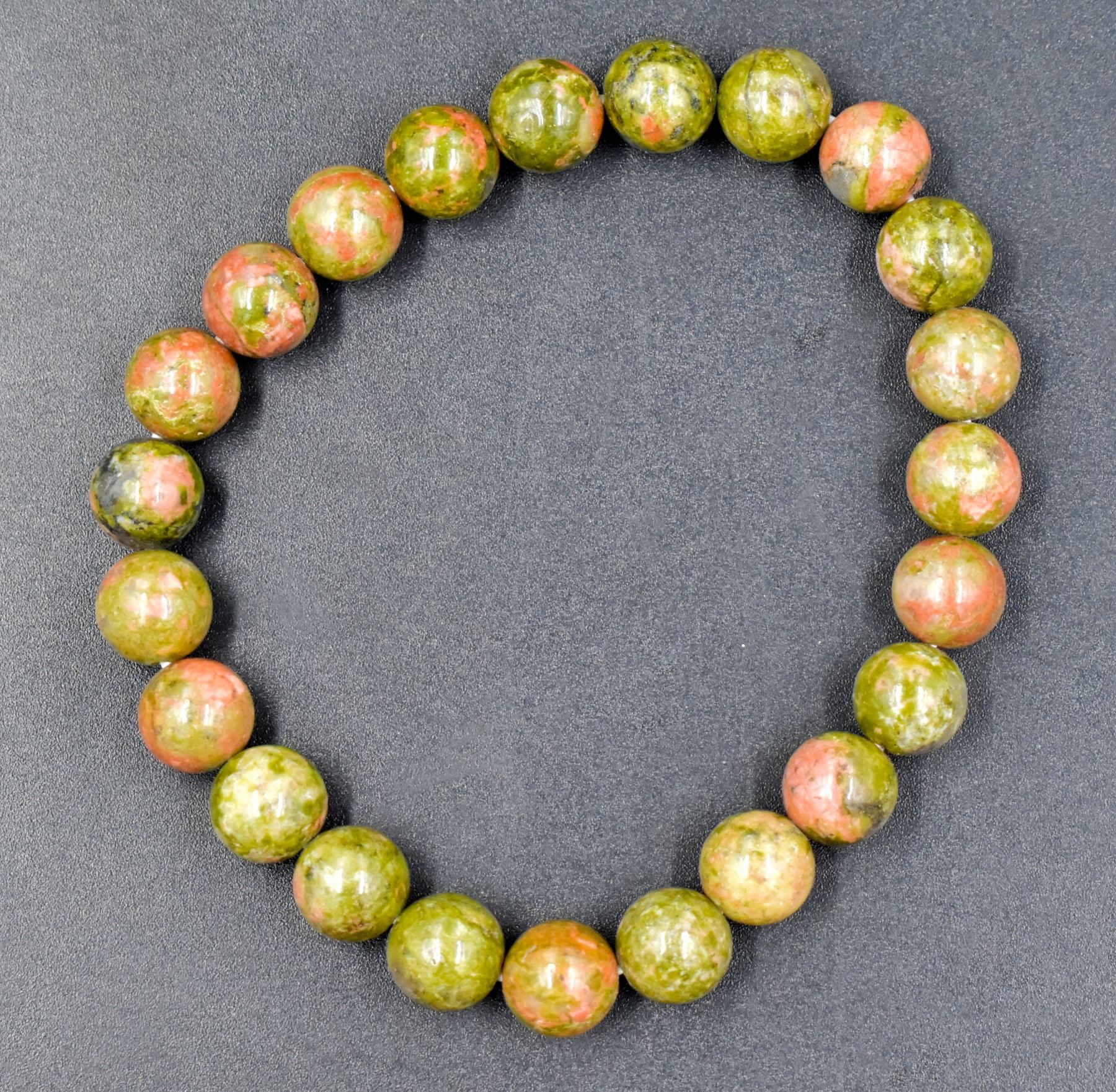 #84-NATURAL UNAKITE BEAD BRACELET 8MM/7.5"