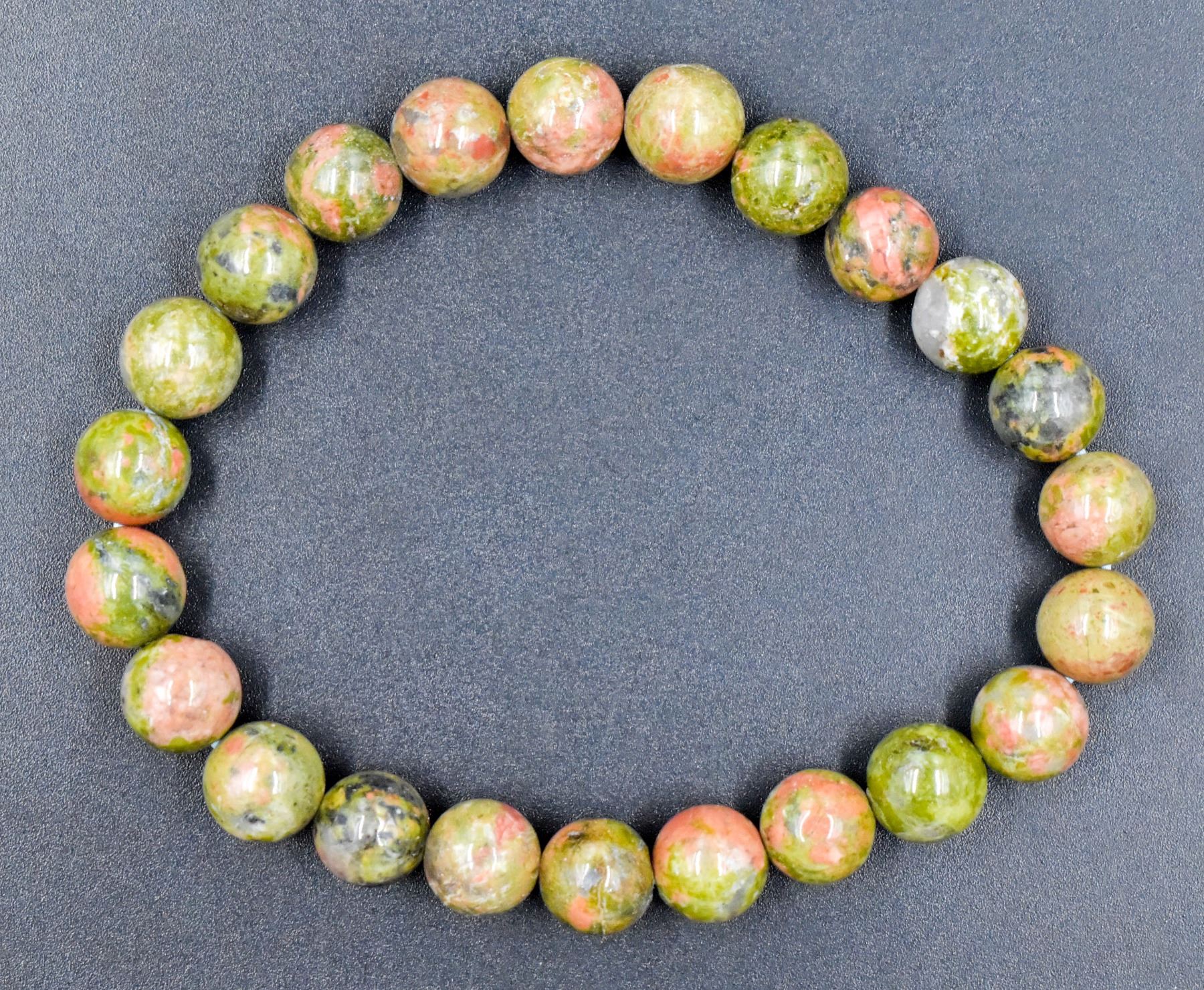 #86-NATURAL UNAKITE BEAD BRACELET 8MM/7.5