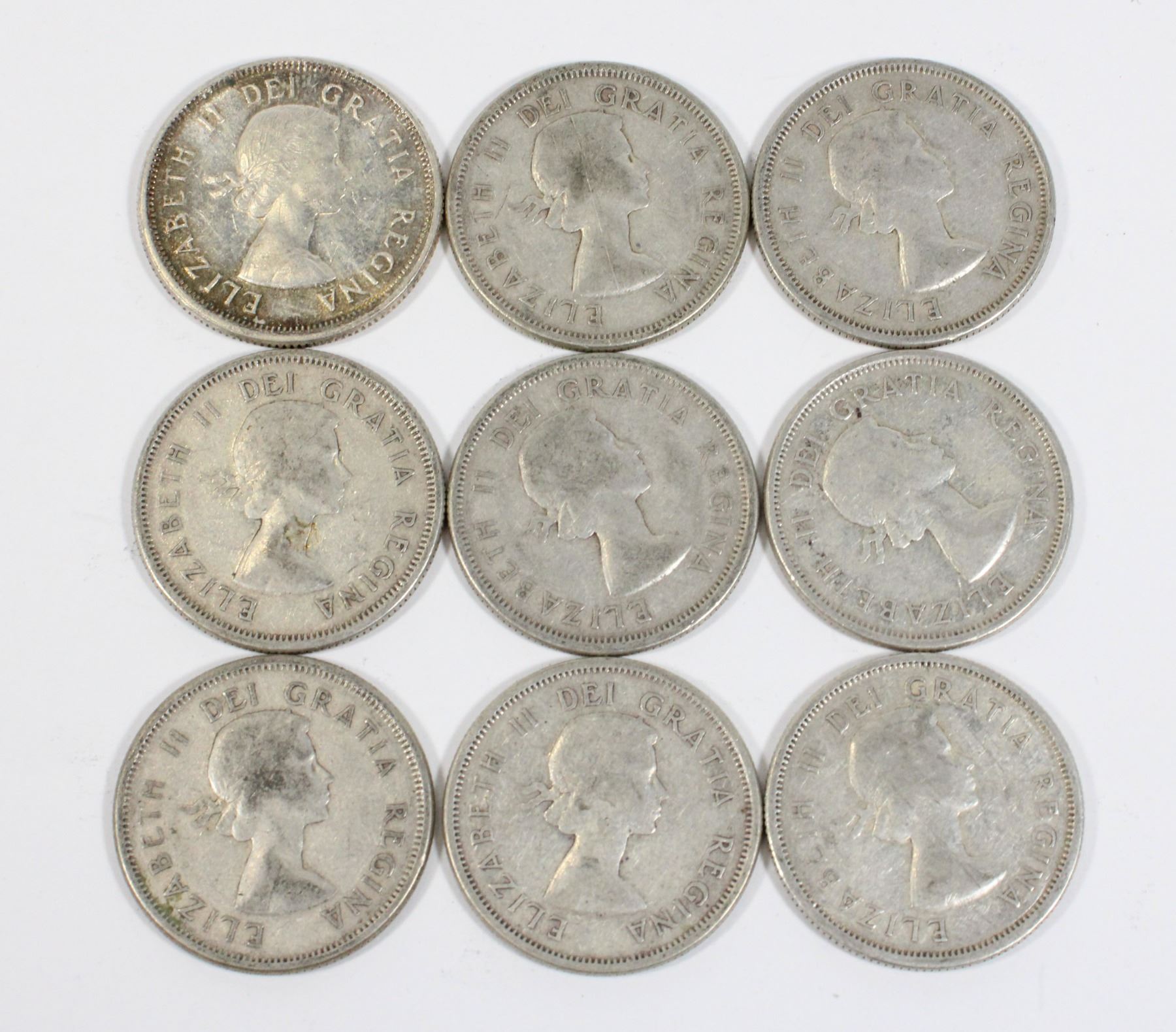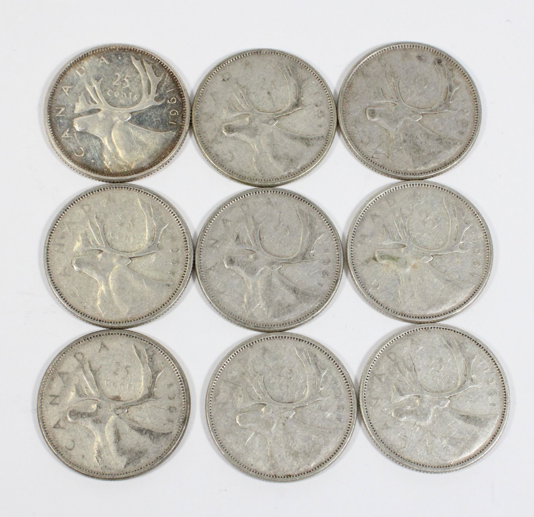 #88 1961 CANADA 25 CENTS SILVER QUARTER COINS LOT