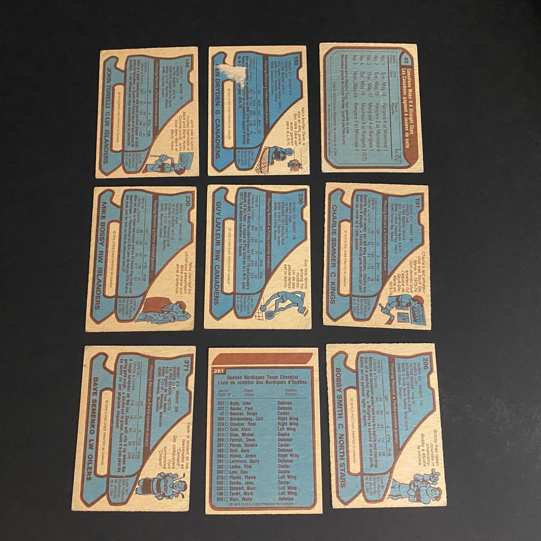 9 CARD LOT 1979/1980 O PEE CHEE DRYDEN, BOSSY, LAFLEUR, SEMENKO AND MORE