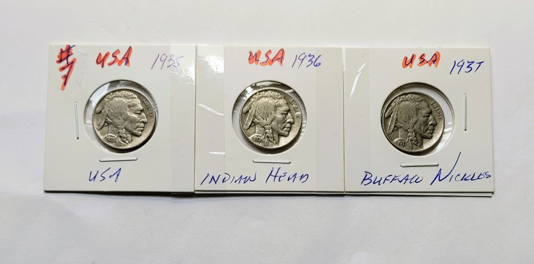 9) LOT OF 3 USA INDIAN HEAD BUFFALO NICKLES, 193