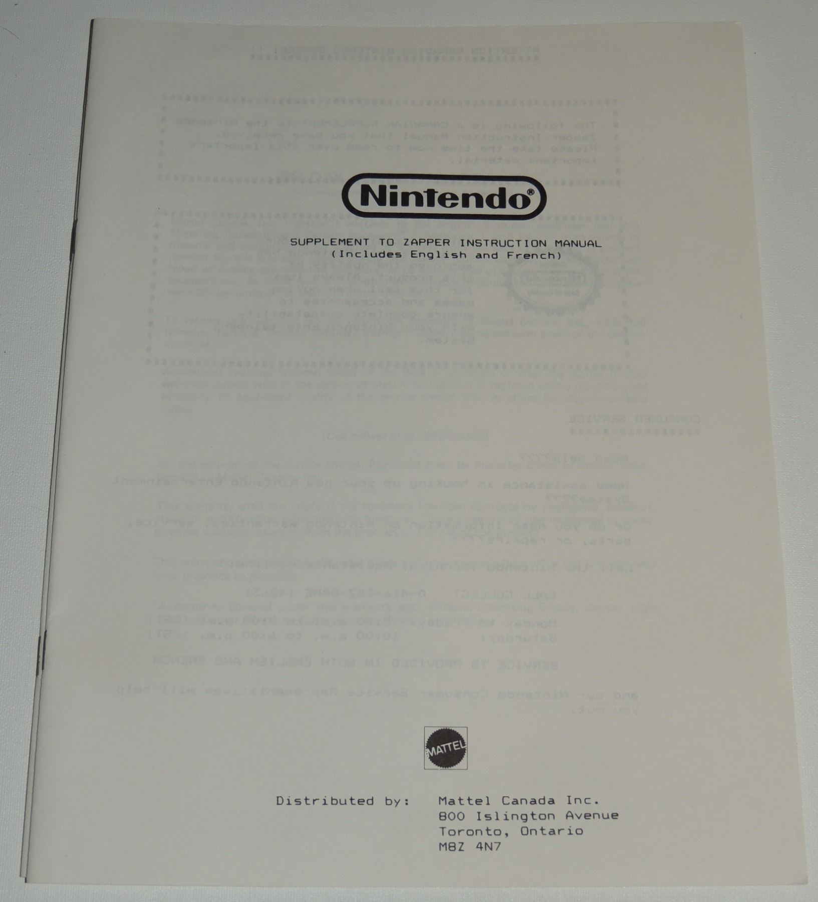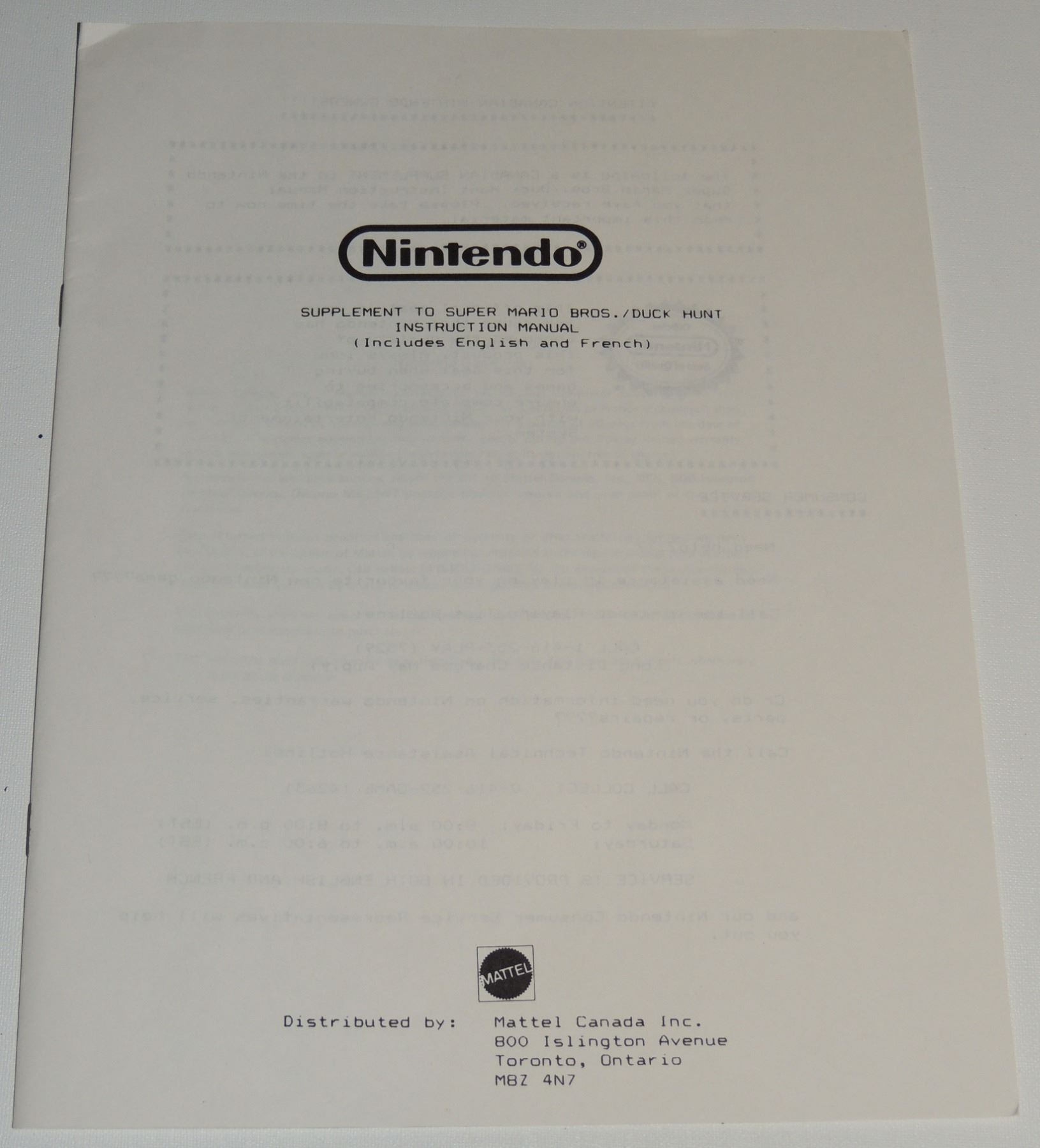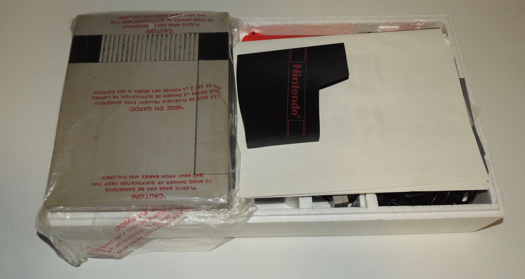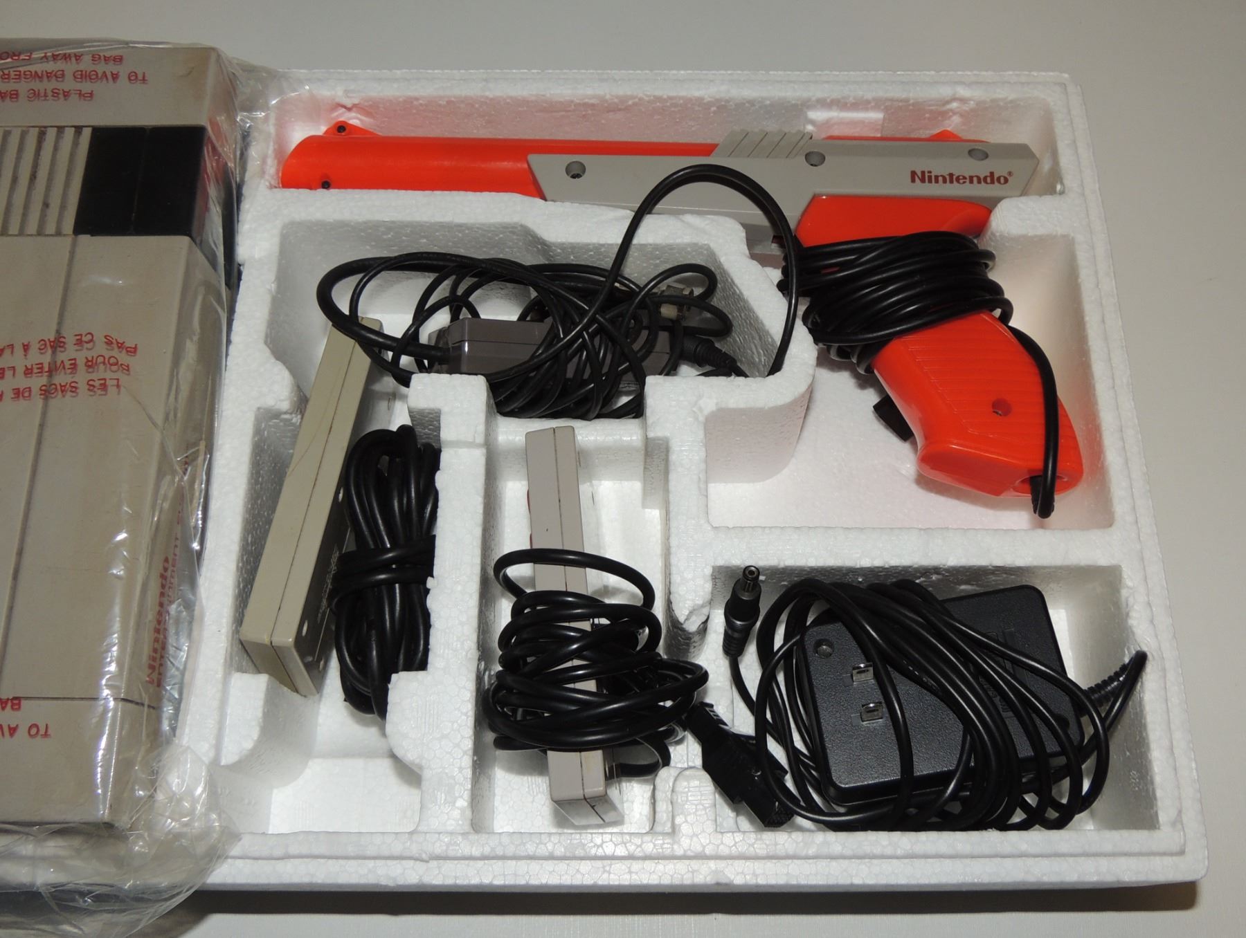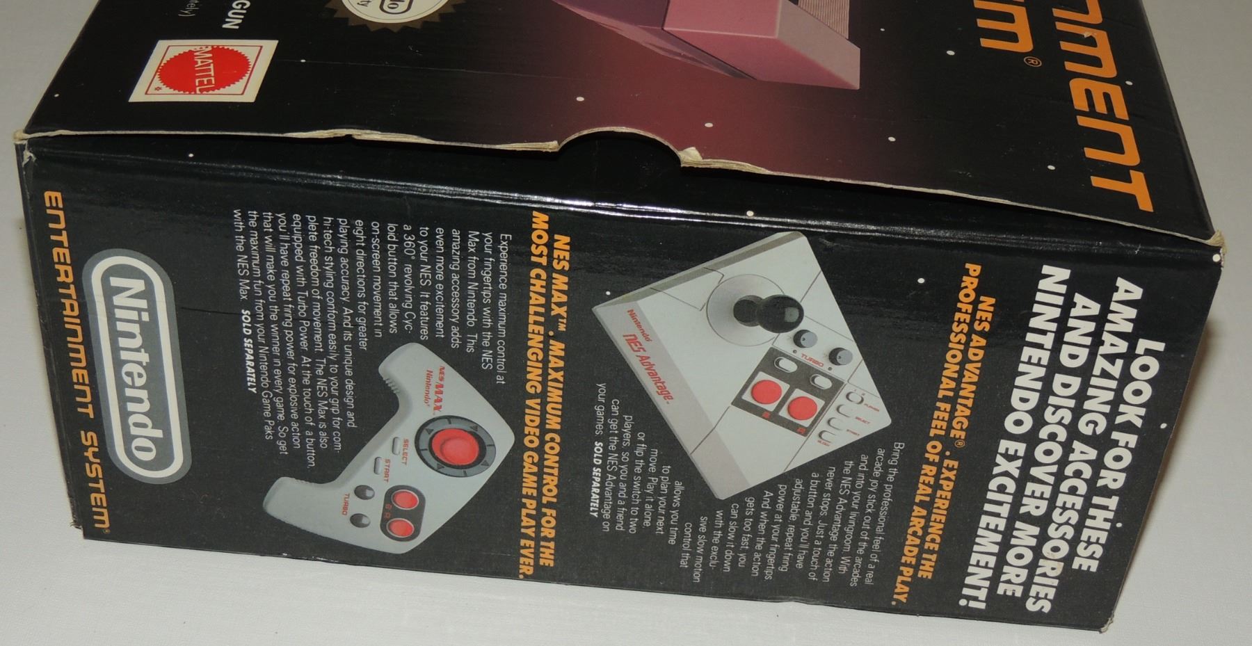 Complete in Box CIB System Tested & Working! Includes all cords (modified power cord), zapper gun, two controllers, Super Mario Brothers / Duck Hunt, Manuals, Bags and more. Recommended further/ Continuious cleaning of 72 pin connector or replacement for optimum fuction. Mattel Canadian Sticker Variation Box