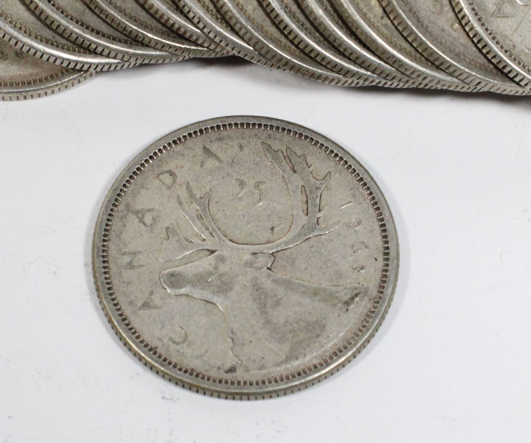 #90 1963 CANADA 25 CENTS SILVER QUARTER COINS LOT