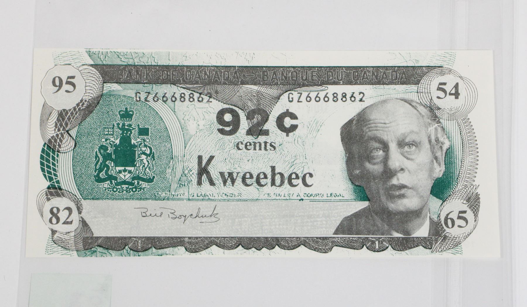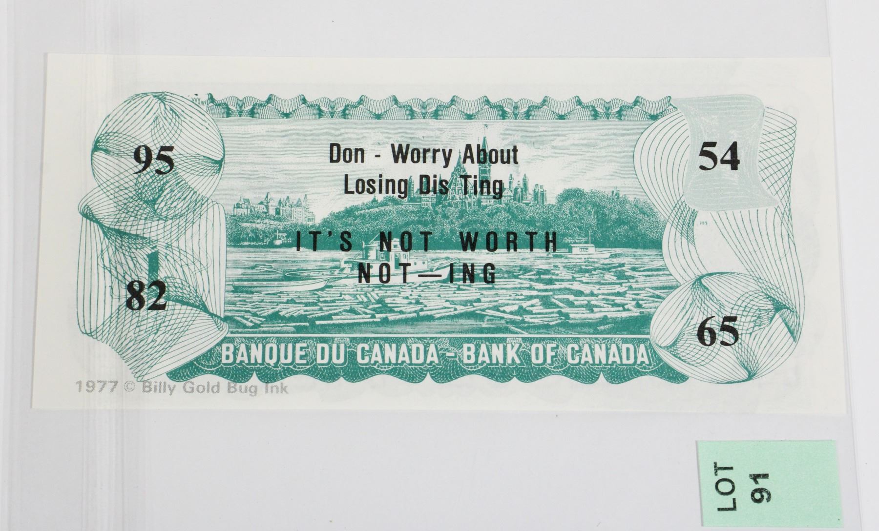 Propaganda Political Note mocking inflation in Canada Vintage paper note 1977 Quebec