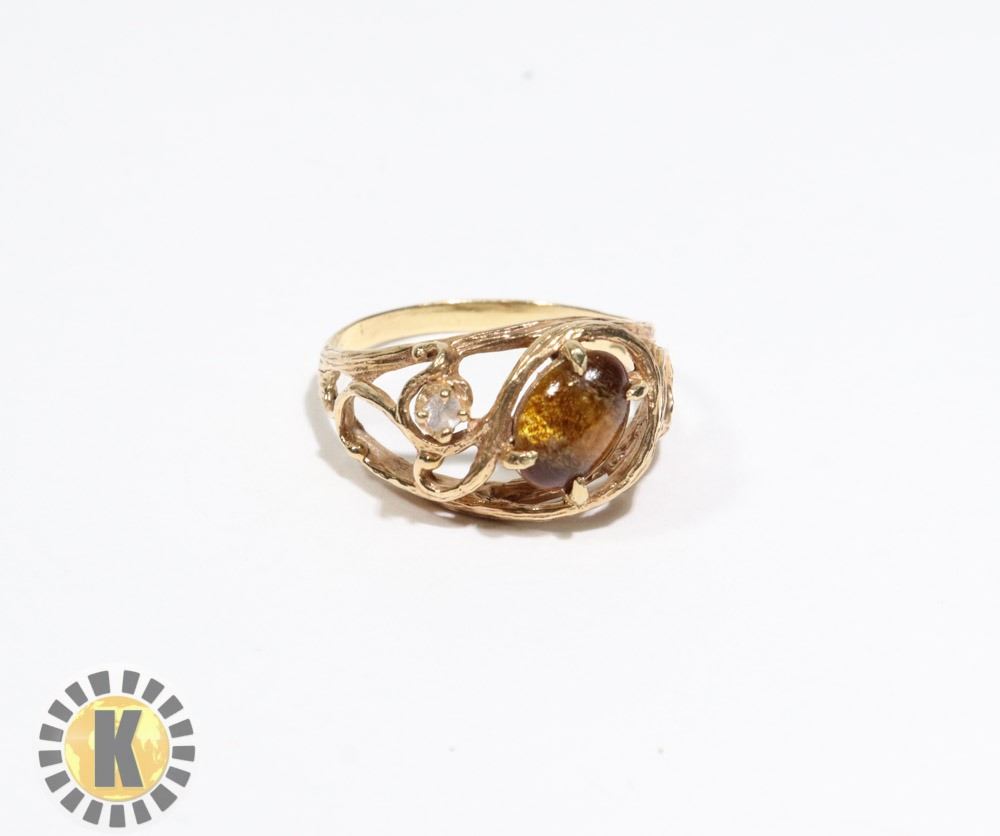 925-105 BAND W/ MEDIUM SIZED BROWN JEWEL &