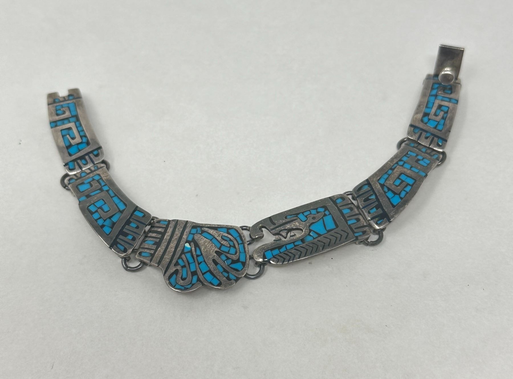 .925 Mexican Bracelet With Inlay Blue Stone