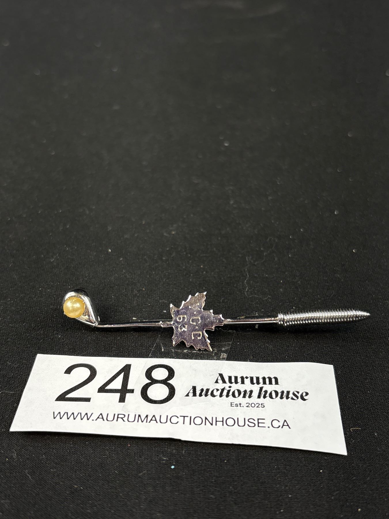 925 Sterling Silver Golf Club Leaf Brooch - 3" - 4.6 Grams - Marked & Tested