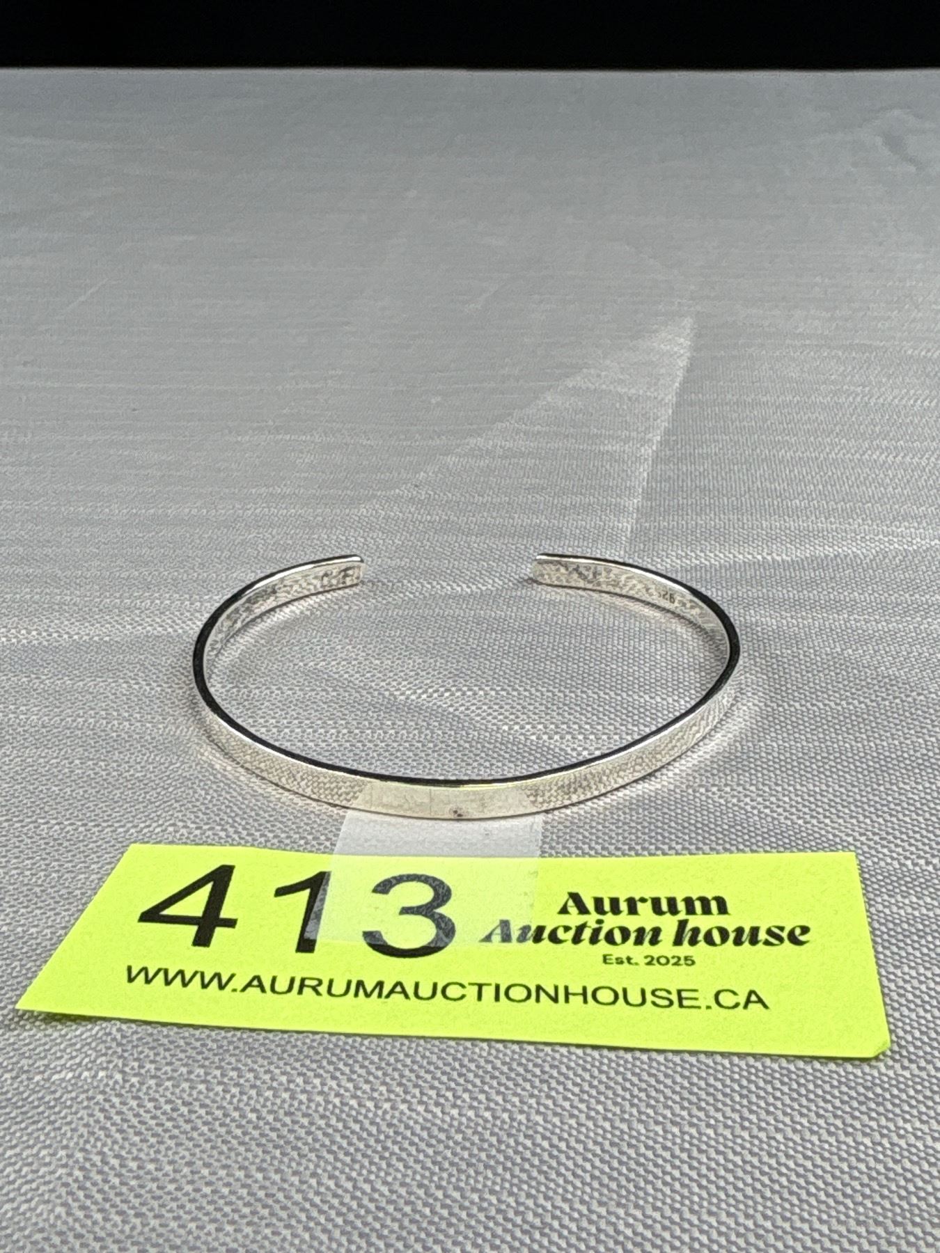 925 Sterling Silver Open Cuff Bangle, Marked 925